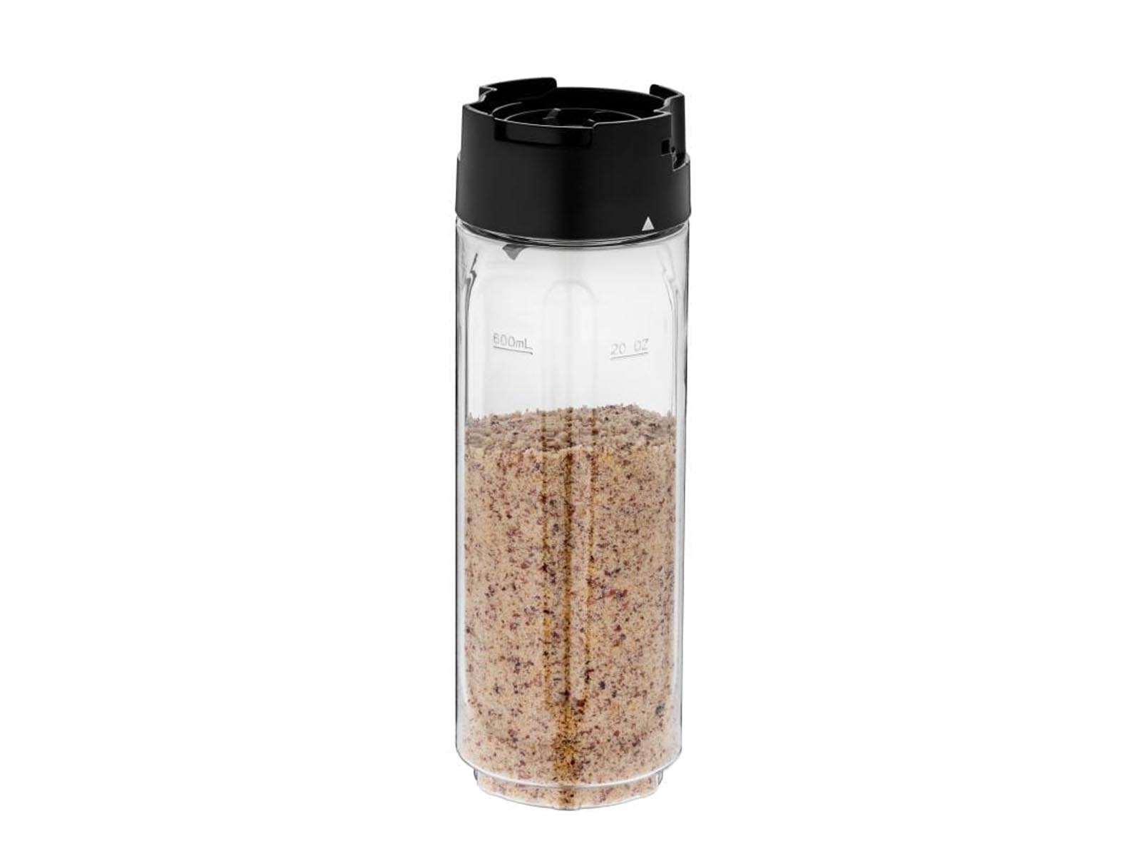 Cylindryczny przezroczysty pojemnik do mieszania składników o pojemności 600 ml wykonany z nowoczesnego wytrzymałego wolnego od BPA tworzywa sztucznego Tritanu - tworzywa, które nie wchodzi w reakcje z żywnością i nie zmienia jej smaku.