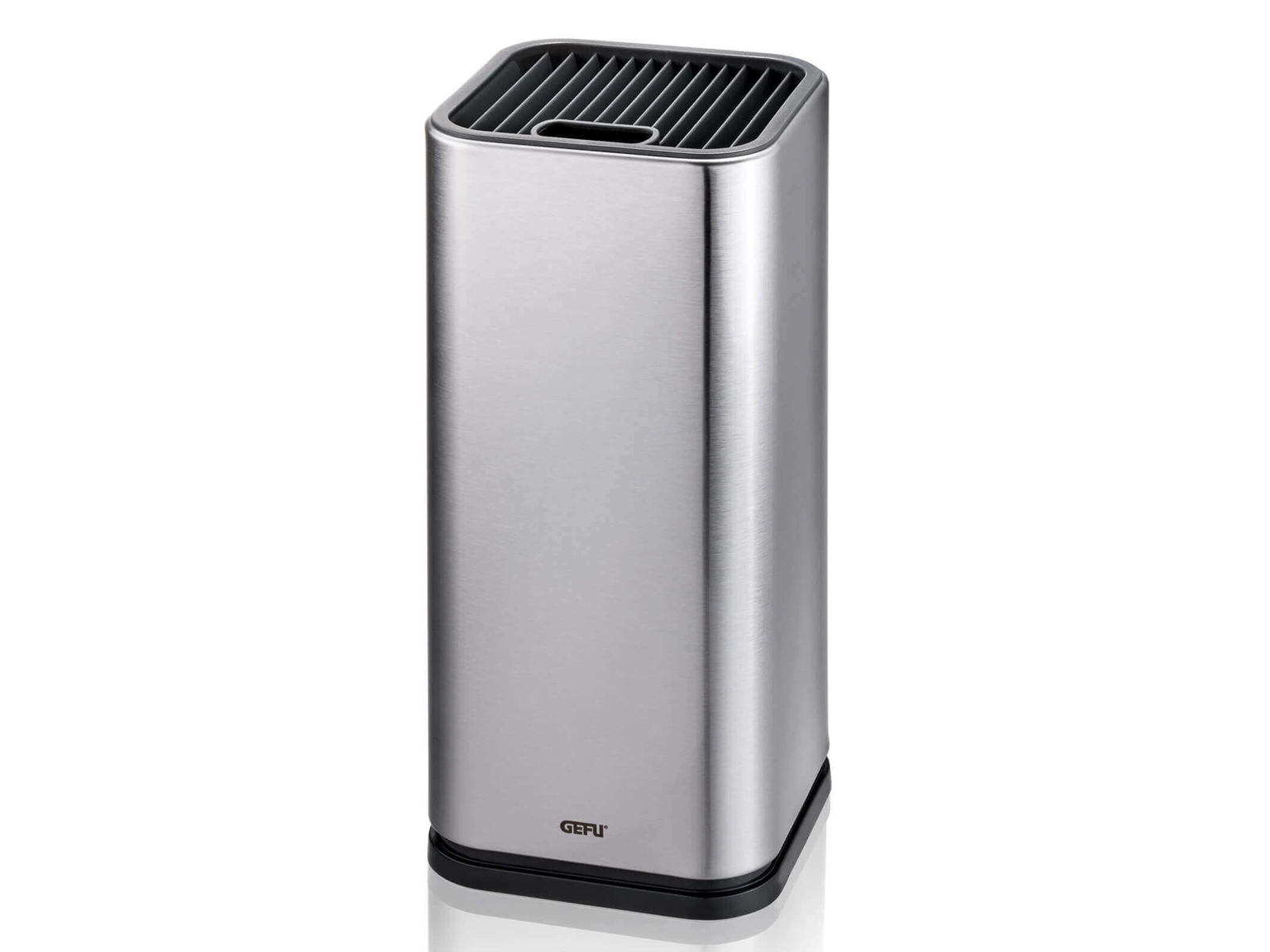 Blok GEFU Insiem zapewnia bezpieczne i wygodne przechowywanie kuchennych noży i nie tylko. Wyposażony w 14 przegródek na ostrza różnej wielkości oraz dodatkową szczelinę na nożyczki lub ostrzałkę, pomaga utrzymać porządek na blacie. Wyjmowana podstawa ułatwia czyszczenie, a solidne materiały gwarantują trwałość i stabilność.