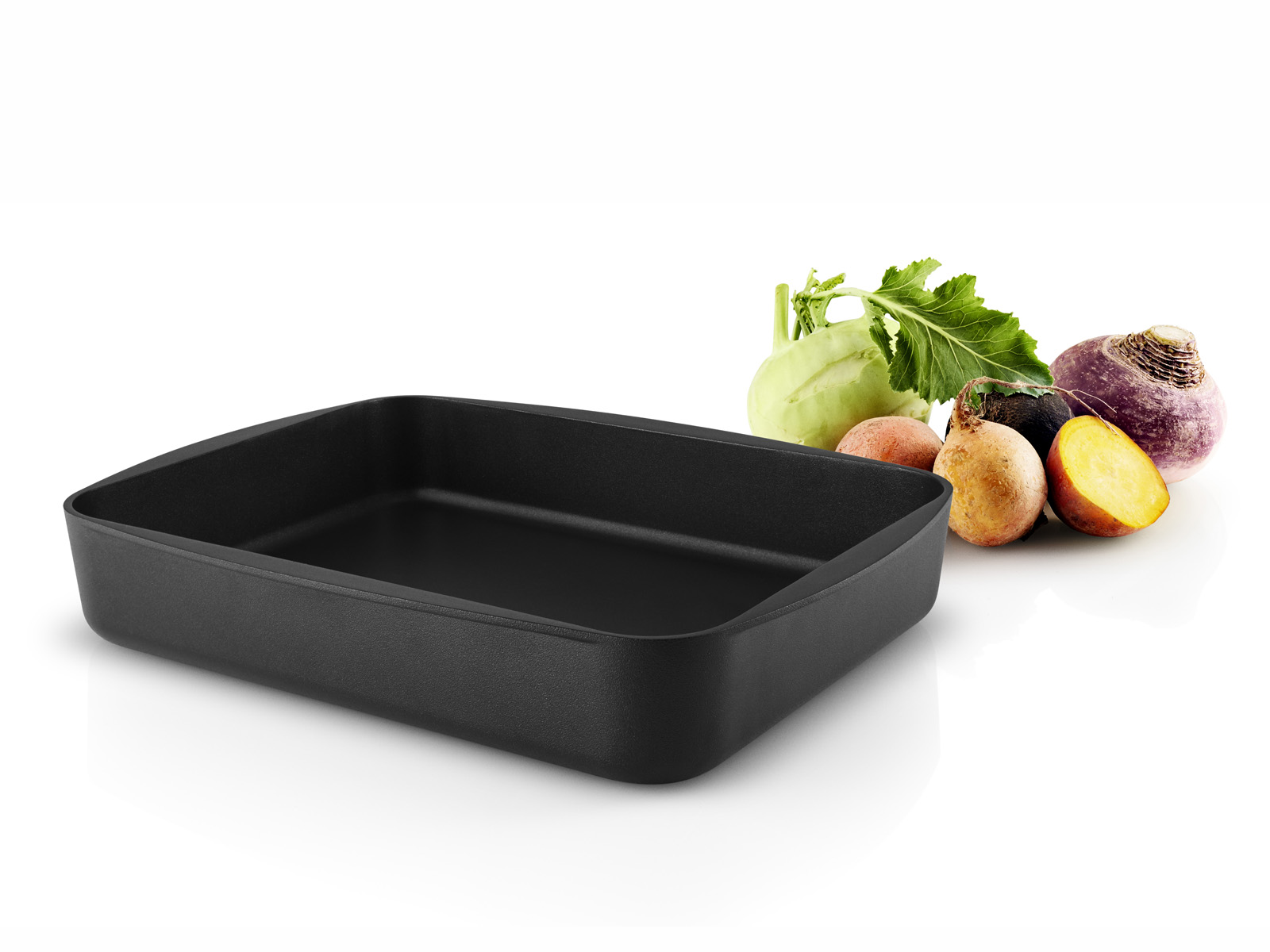 Elegancka praktyczna prostokątna brytfanka z odlewu aluminiowego z wewnętrzną nieprzywierającą powłoką Slip-Let®.