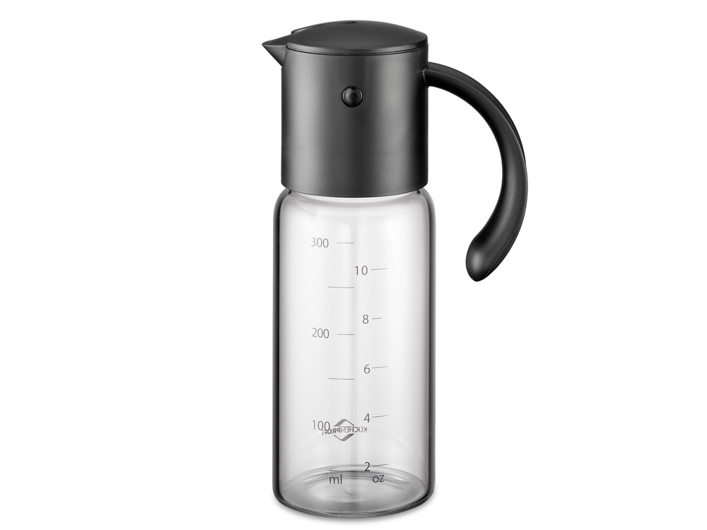 Oryginalna i praktyczna szklana butelka na oliwę, ocet lub na inne płynne dodatki i przyprawy do potraw.