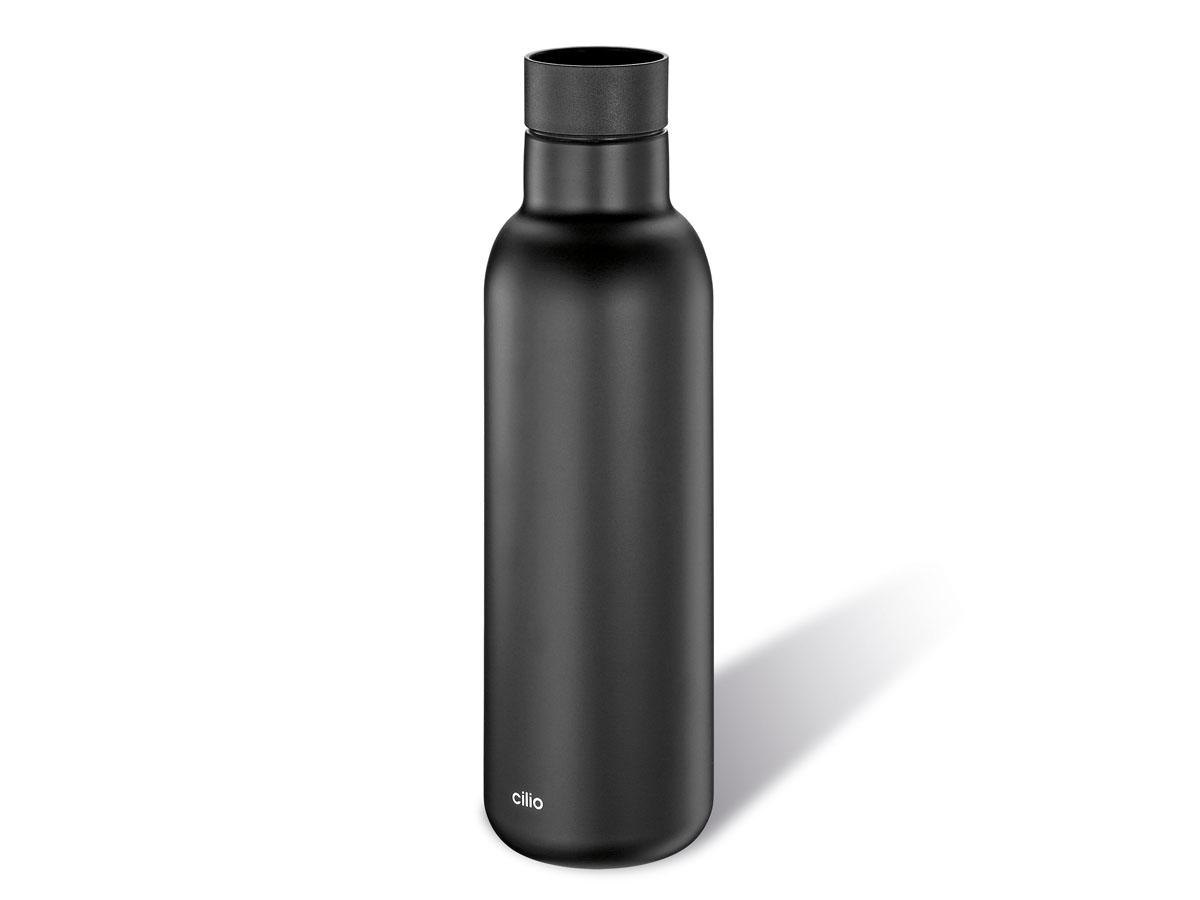 Cilio Deluxe Click 360 to elegancka i bardzo funkcjonalna butelka termiczna na gorące i zimne napoje o wyjątkowo unikalnej konstrukcji - zakrętka butelki posiada specjalną konstrukcję tzw. inteligentnego kliknięcia, umożliwiającą picie napojów z każdej strony butelki - z pełnych 360 stopni - tak jakby nie było pokrywki czy zakrętki, dającą odczucie picia jak ze zwykłej klasycznej butelki lub kubka.