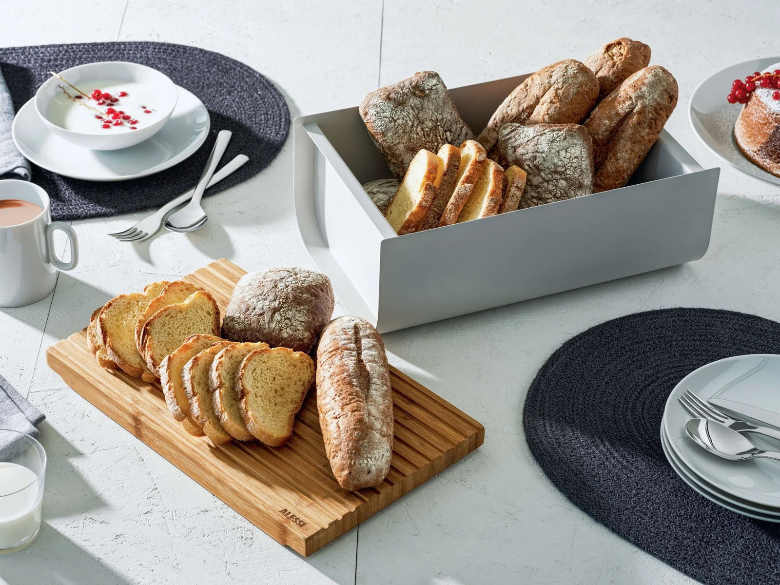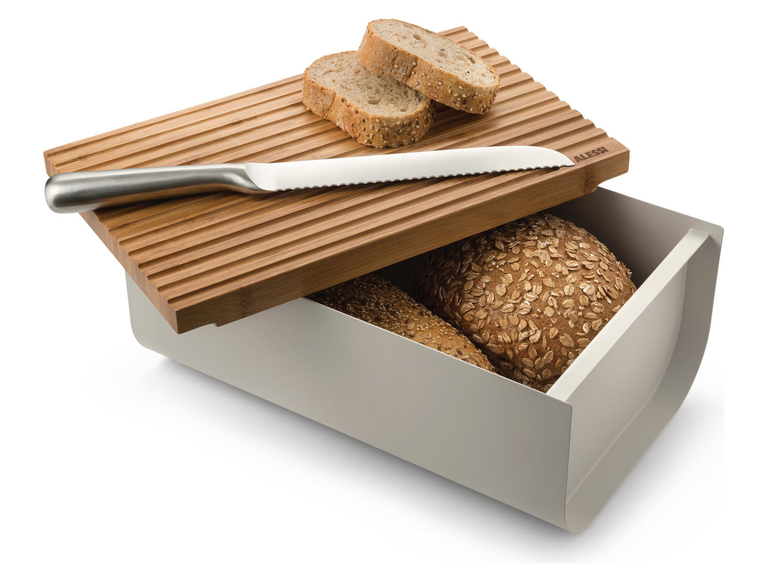 Jak wszystkie projekty Alessi, również projekt chlebaka w niebywały sposób łączy efektowną kompozycję z klasyczną i praktyczną funkcjonalnością