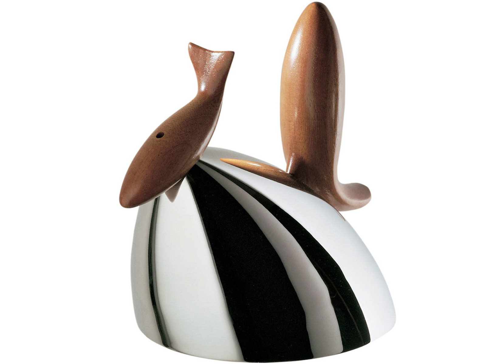 Czajnik Pito to naczynie o wyraźnie artystycznym charakterze, w którym codzienne gotowanie spotyka się z rzeźbiarską formą. Nakrętka z gwizdkiem oraz uchwyt są stylizowane na 2 ścigające się ze sobą ryby, a gwizdek wydaje nieoczywiste, melodyjne brzmienie przypominające śpiew wieloryba. Sam korpus czajnika odzwierciedla srebrną taflę wody, na której tańczą morskie stworzenia.
