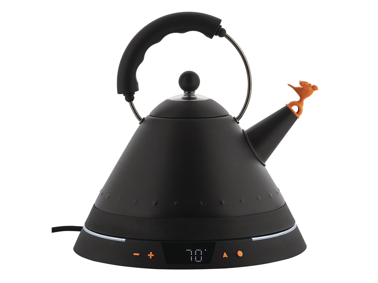 Czajnik Bird to przede wszystkim charakterystyczny, nawiązujący do pierwowzoru, stożkowy kształt, ergonomiczna rączka oraz wyposażenie w gwizdek w kształcie ptaszka, który pomimo automatycznego wyłącznika, sygnalizuje gotowanie się wody.