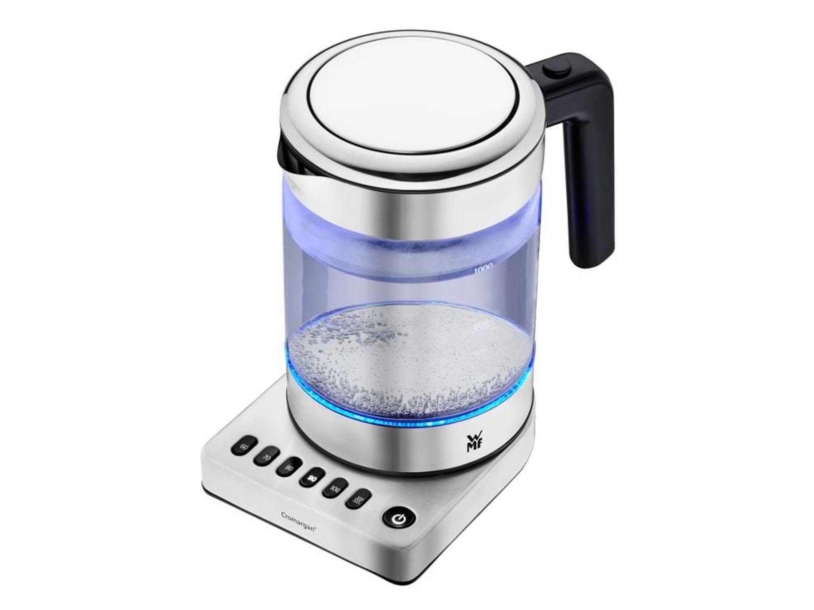 Obudowa czajnika cylindryczna wykonana z wytrzymałej odpornej na zarysowania stali nierdzewnej 18/10 Cromargan® z solidnym uchwytem zapewniającym pewny chwyt oraz szklanymi bokami wykonanymi z wytrzymałego przezroczystego bezbarwnego żaroodpornego szkła wytrzymującego temperaturę do 200°C.