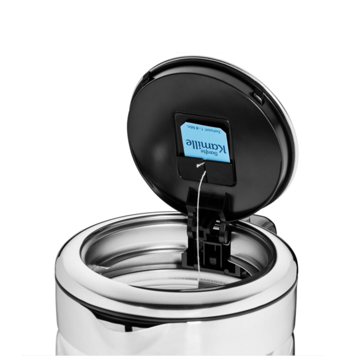 Czajnik z dodatkową funkcją zaparzacza do herbaty - konstrukcja umożliwia montaż wewnątrz czajnika specjalnego dodatkowego wkładu z sitkiem do parzenia herbaty sypanej (liściastej), a specjalny uchwyt na wieczku umożliwia parzenia herbaty w torebkach (ekspresowej).