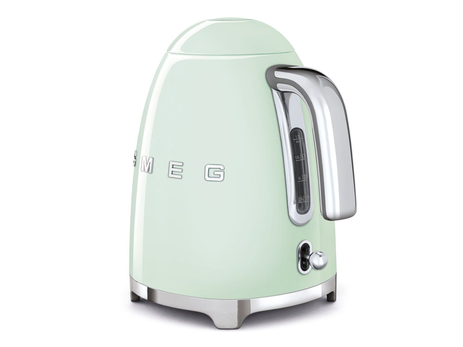 Czajnik jest wykonany z wysokiej jakości lakierowanej stali nierdzewnej. Chromowana podstawa, uchwyt, wylewka, dźwignia włącznika oraz logo Smeg pięknie kontrastują z bazowym kolorem czajnika.