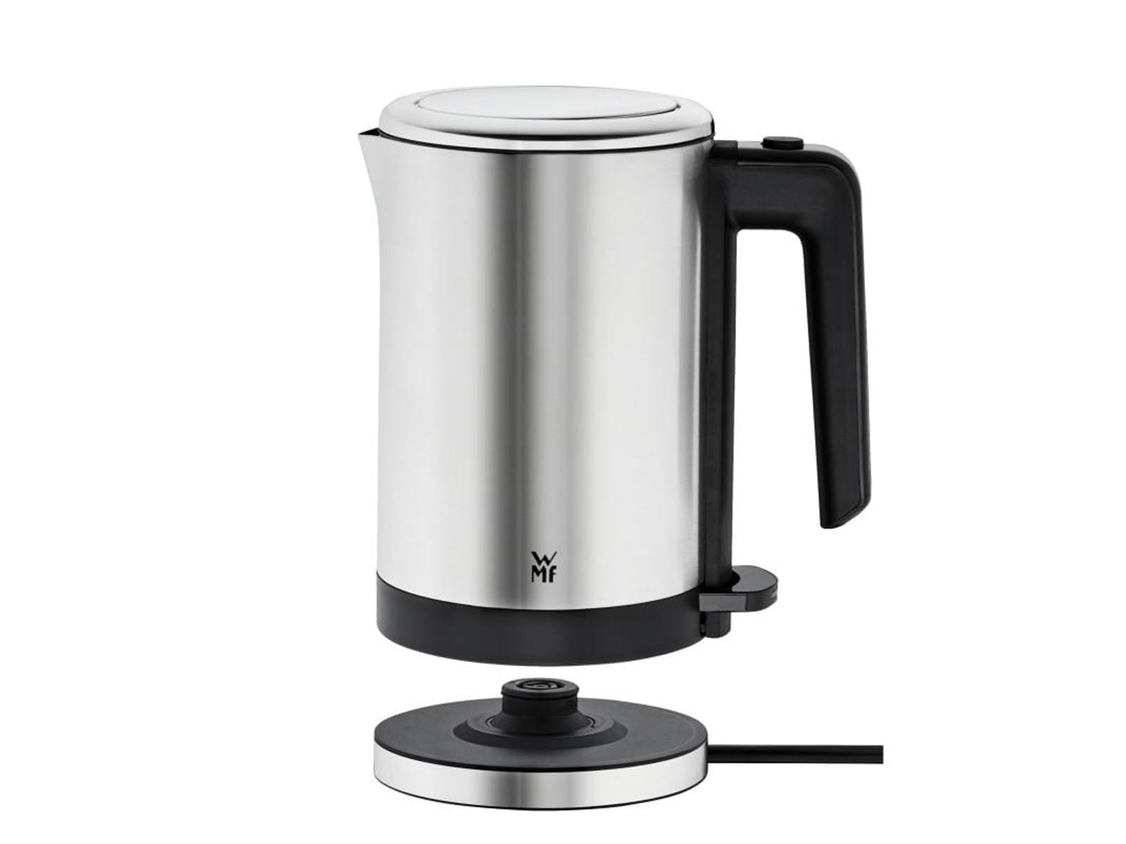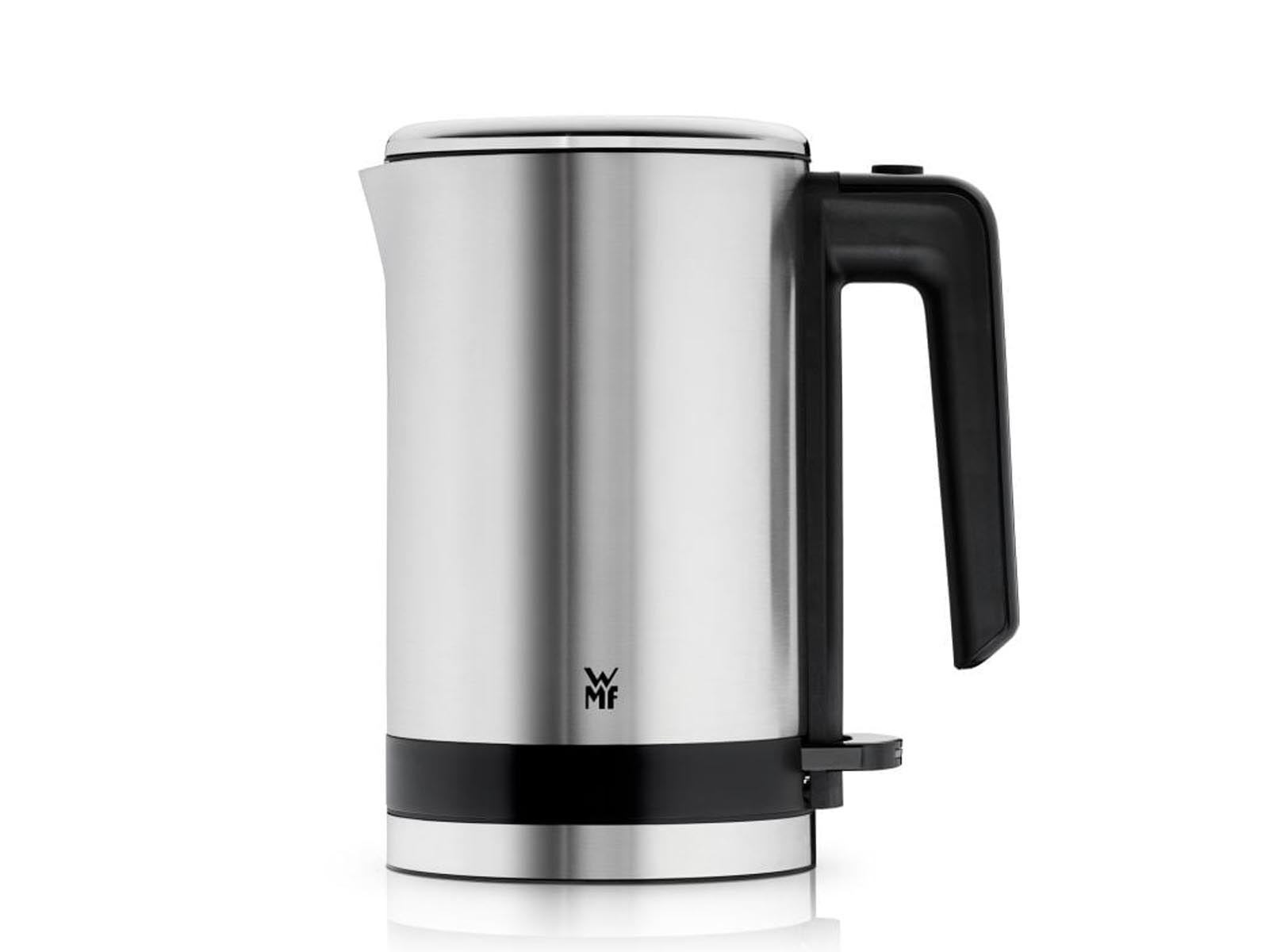 Obudowa czajnika cylindryczna wykonana z wytrzymałej stali nierdzewnej Cromargan® z solidnym uchwytem zapewniającym pewny chwyt oraz innymi elementami z tworzywa sztucznego.