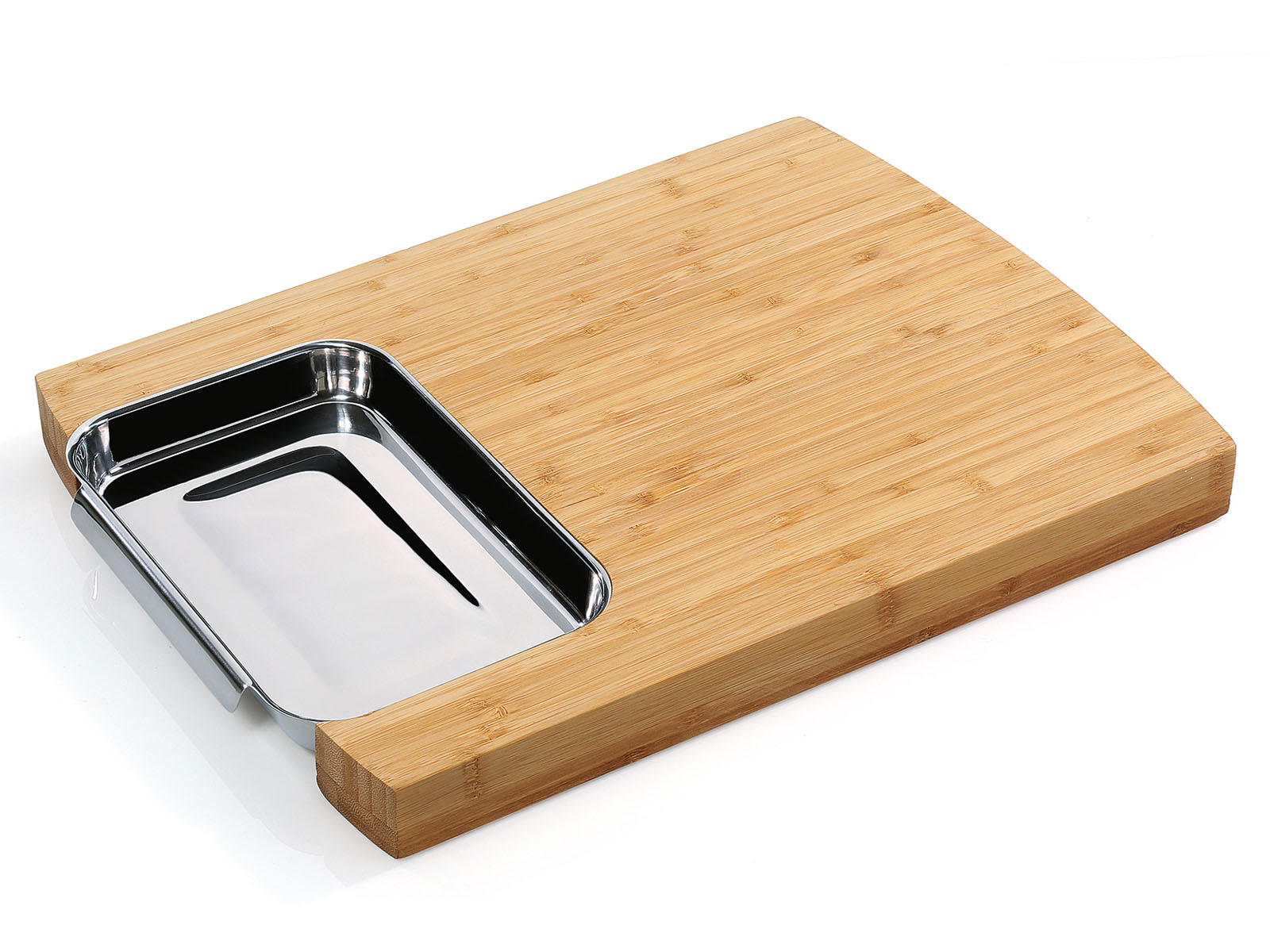 Zassenhaus All In One to kolekcja oryginalnych desek i bloków do krojenia z wbudowanymi tackami roboczymi. All In One to uniwersalne deski, które pozwolą zachować porządek podczas krojenia wszelkiego rodzaju składników. Tacka umieszczona w specjalnym wcięciu może posłużyć do zsuwania pokrojonych produktów lub odkrojonych resztek. Deska jest dwustronna – podczas używania na drugiej stronie wcięcie może posłużyć do wsunięcia talerza, aby zmniejszyć ryzyko rozsypania produktów podczas zsuwania