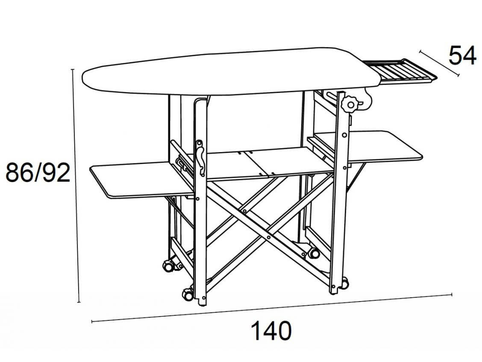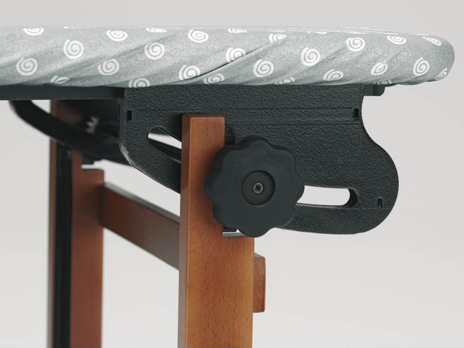 Oryginalne deski do prasowania Arredamenti łączą naturalną elegancję z wygodą codziennego użytkowania. Deska Bravo wyróżnia się ciekawą konstrukcją, która ułatwia prasowanie. Wykonana z wytrzymałego drewna bukowego w kolorze drewna wiśniowego, gwarantuje stabilność oraz długą żywotność. Szeroka powierzchnia robocza o wymiarach 115 cm x 54 cm wykonana z perforowanego, ocynkowanego metalu umożliwia równomierne rozprowadzanie pary i wygodne prasowanie nawet tak dużych tkanin jak zasłony. Regulowana wysokość w zakresie od 86 do 92 cm pozwala dopasować blat, tak aby zadbać o prawidłową pozycję ciała oraz zminimalizować bóle ramion i pleców. Deska wyposażona jest w szeroki, wysuwany uchwyt na żelazko, przestronne półki na pranie oraz obrotowe kółka, które działają tylko po złożeniu, ułatwiając przemieszczanie. Specjalne półki, wiszące na różnych wysokościach, sprawiają, że gotowe ubrania można łatwo rozdzielić i rozłożyć na większej przestrzeni – to dodatki, które przykuwają szczególną uwagę w tym modelu!