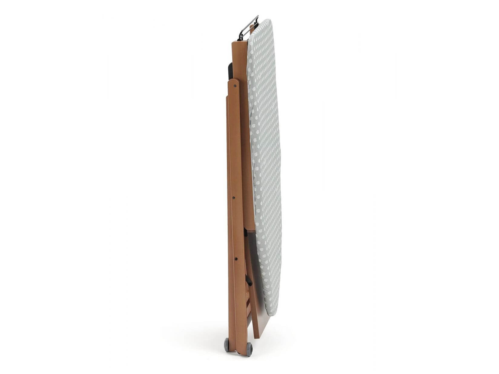 Oryginalne deski do prasowania Arredamenti łączą naturalną elegancję z wygodą codziennego użytkowania. Deska Stirocomodo wykonana z trwałego drewna bukowego w kolorze ciemnobrązowym, zapewnia stabilność podczas prasowania oraz długą żywotność. Powierzchnia robocza o wymiarach 135 cm x 45 cm została wykonana z ocynkowanego, perforowanego metalu, co umożliwia równomierne rozprowadzanie pary. Zielony pokrowiec z bawełny, wyposażony w białą podkładkę wchłaniającą, jest odporny na wysokie temperatury i skutecznie pochłania wilgoć, gwarantując lepsze efekty prasowania bez zagnieceń. Regulowana wysokość na 4 poziomach do wyboru (84 cm, 88 cm, 91 cm i 93 cm) pozwala zadbać o prawidłową pozycję ciała, która zminimalizuje bóle pleców i ramion. Dodatkowo deska posiada wysuwany uchwyt na żelazko, przestronną półkę na pranie oraz kółka z nierysującej gumy, działające tylko po złożeniu. Dzięki udogodnieniu w postaci kółek poruszanie się po domu z deską stanie się wyjątkowo proste i przyjemne!