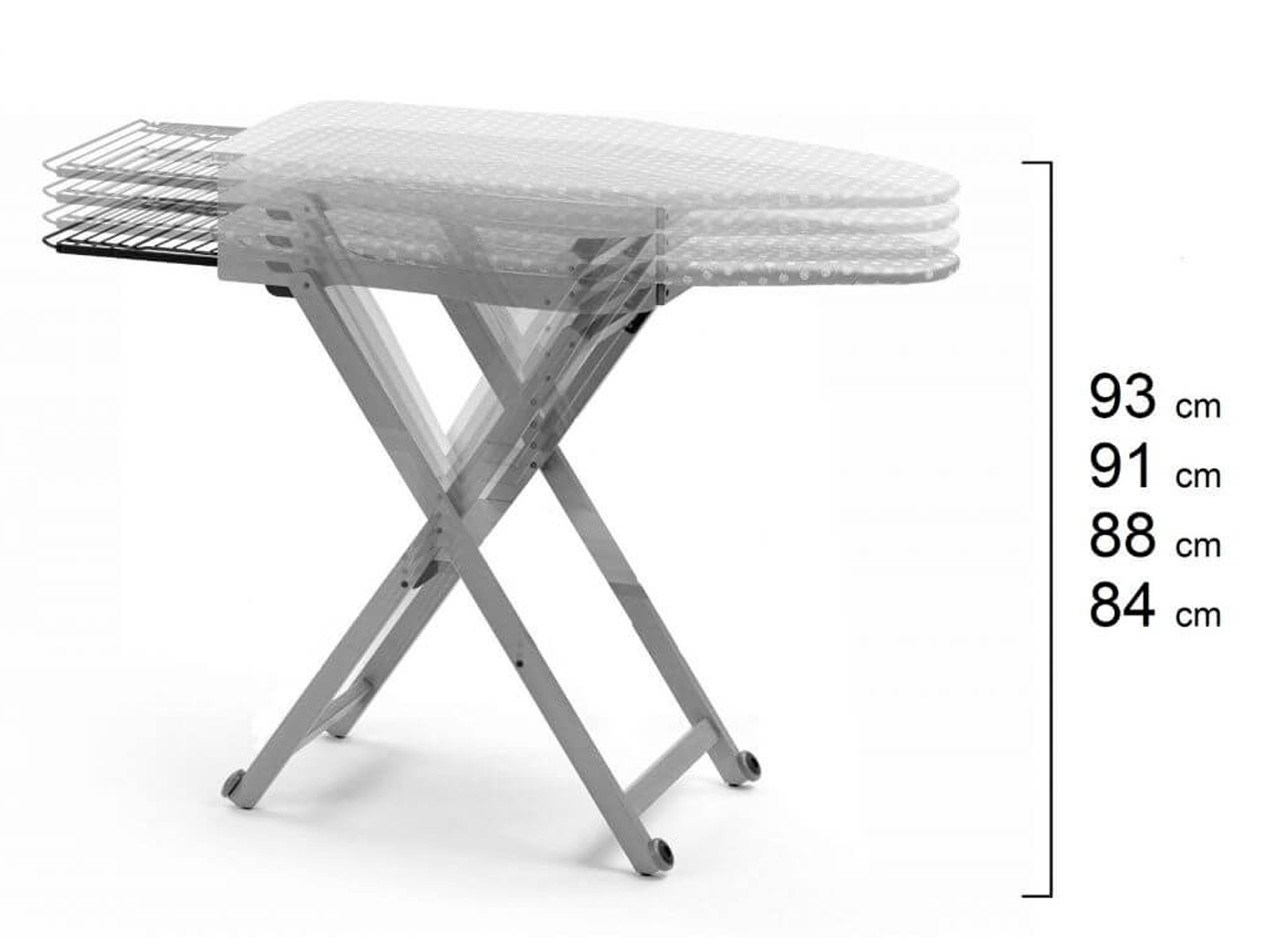 Oryginalne deski do prasowania Arredamenti łączą naturalną elegancję z wygodą codziennego użytkowania. Deska Stirolight wykonana z trwałego drewna bukowego w kolorze ciemnobrązowym, zapewnia stabilność podczas prasowania oraz długą żywotność. Powierzchnia robocza o wymiarach 135 cm x 45 cm została wykonana z ocynkowanego, perforowanego metalu, co umożliwia równomierne rozprowadzanie pary. Zielony pokrowiec z bawełny, wyposażony w białą podkładkę wchłaniającą, jest odporny na wysokie temperatury i skutecznie pochłania wilgoć, gwarantując lepsze efekty prasowania bez zagnieceń. Regulowana wysokość na 4 poziomach do wyboru (84 cm, 88 cm, 91 cm i 93 cm) pozwala zadbać o prawidłową pozycję ciała, która zminimalizuje bóle pleców i ramion. Dodatkowo deska posiada wysuwany uchwyt na żelazko oraz kółka z nierysującej gumy, działające tylko po złożeniu. Dzięki udogodnieniu w postaci kółek poruszanie się po domu z deską stanie się wyjątkowo proste i przyjemne!