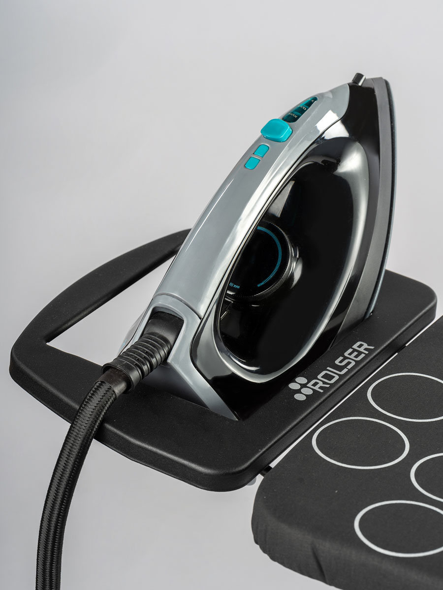 Rolser K-S to wyjątkowa i jednocześnie najmniejsza w ofercie Rolser deska do prasowania, która sprawia, że codzienne obowiązki stają się prostsze i wygodniejsze. Cała konstrukcja utrzymana jest w głębokiej czerni, dzięki czemu prezentuje się nowocześnie i minimalistycznie, a jednocześnie zapewnia maksymalną stabilność dzięki solidnym, rurkowatym nogom i bezpiecznemu systemowi blokady.