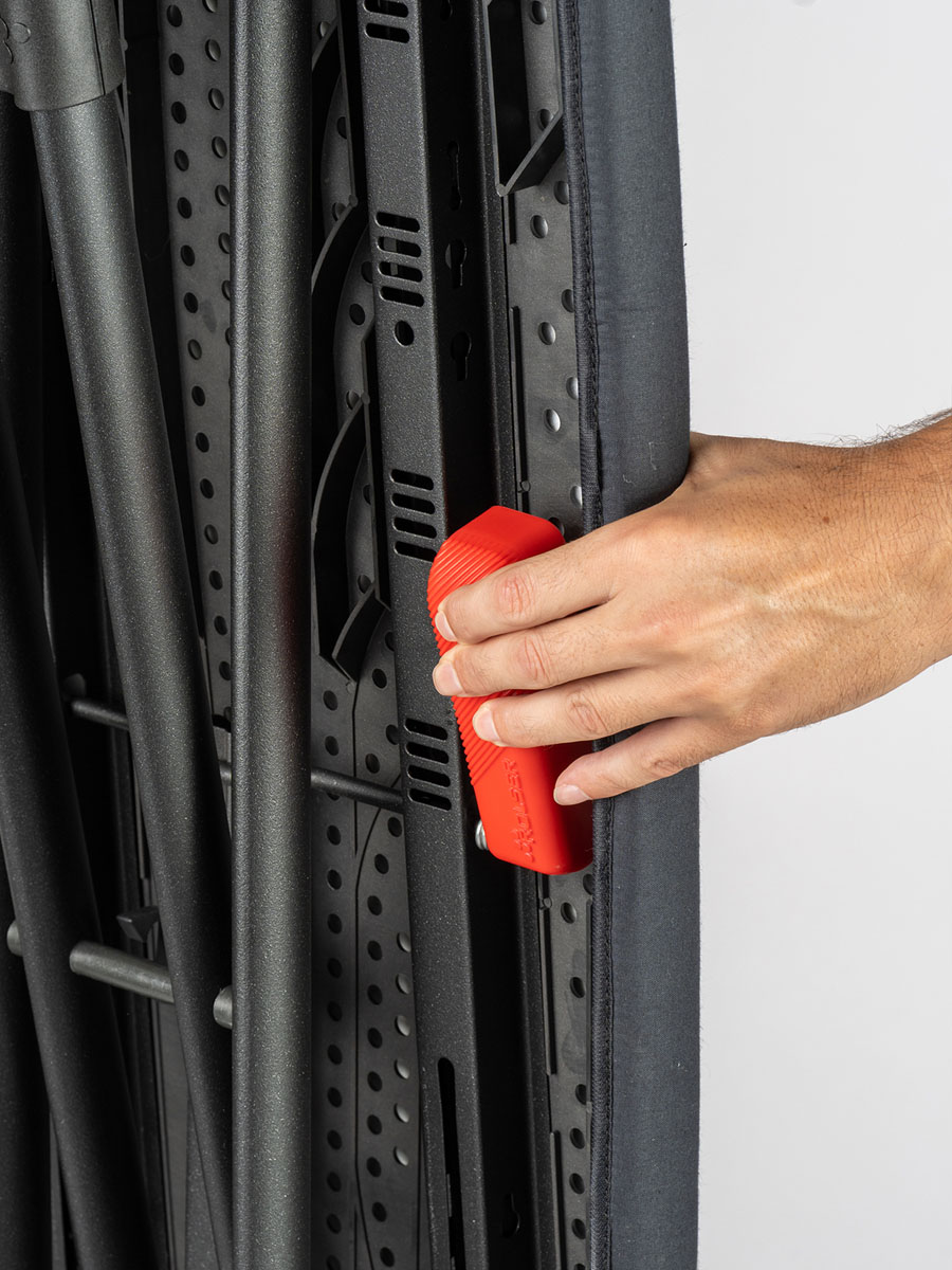 Rolser K-S to wyjątkowa i jednocześnie najmniejsza w ofercie Rolser deska do prasowania, która sprawia, że codzienne obowiązki stają się prostsze i wygodniejsze. Cała konstrukcja utrzymana jest w głębokiej czerni, dzięki czemu prezentuje się nowocześnie i minimalistycznie, a jednocześnie zapewnia maksymalną stabilność dzięki solidnym, rurkowatym nogom i bezpiecznemu systemowi blokady.