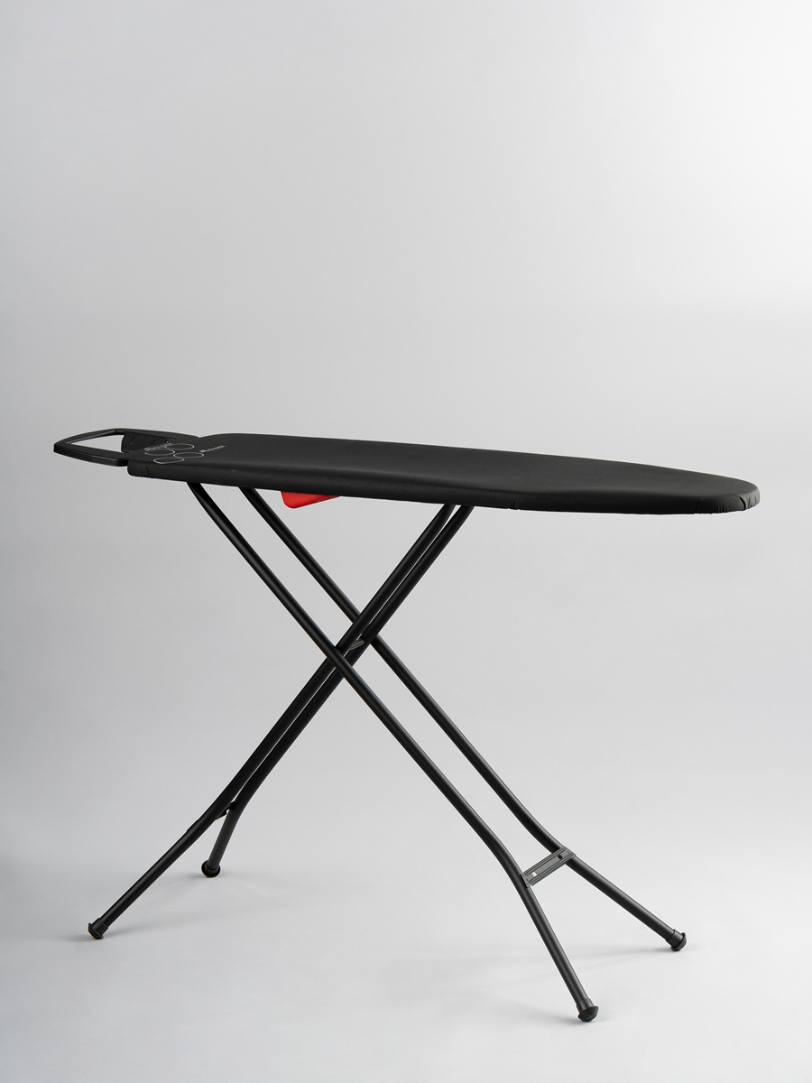 Perforowany blat wykonany z jednego kawałka metalu został zaprojektowany specjalnie z myślą o prasowaniu z wysokim wyrzutem pary – para swobodnie przenika przez powierzchnię, przyspieszając cały proces prasowania. Pokrycie z tkaniny zawierającej mikrocząsteczki metalu jest odporne na wysokie temperatury, co zapewnia trwałość i komfort pracy nawet przy mocnych żelazkach parowych.