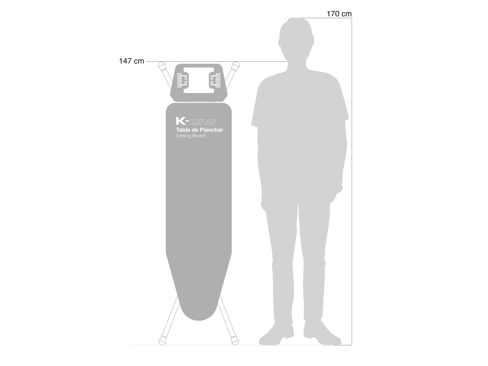 Deska oferuje 10 poziomów regulacji wysokości w zakresie 60–94 cm, działa płynnie i automatycznie się blokuje, by uniknąć przypadkowego złożenia. Specjalny zatrzask zabezpiecza nogi po złożeniu, dzięki czemu model jest wyjątkowo kompaktowy i wygodny w przechowywaniu.
