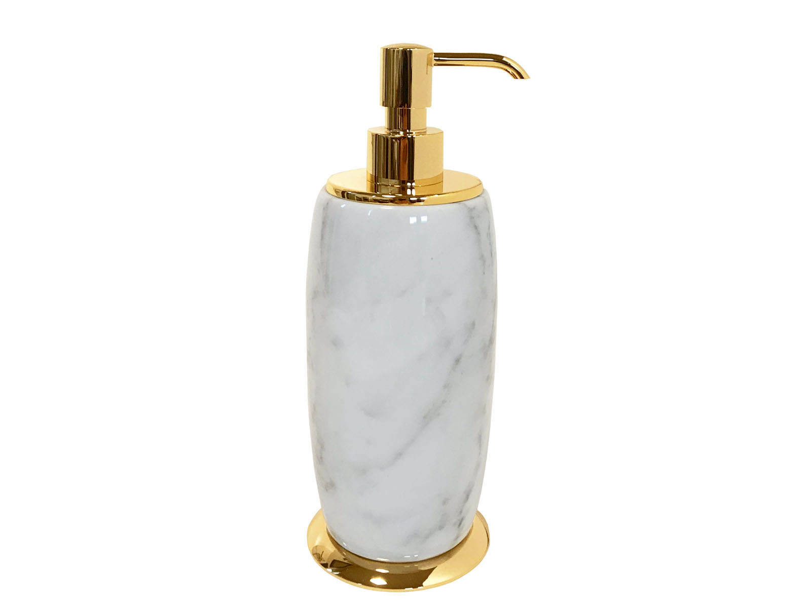 Naturalny kolor marmuru Bianco Carrara, wykończenie złote