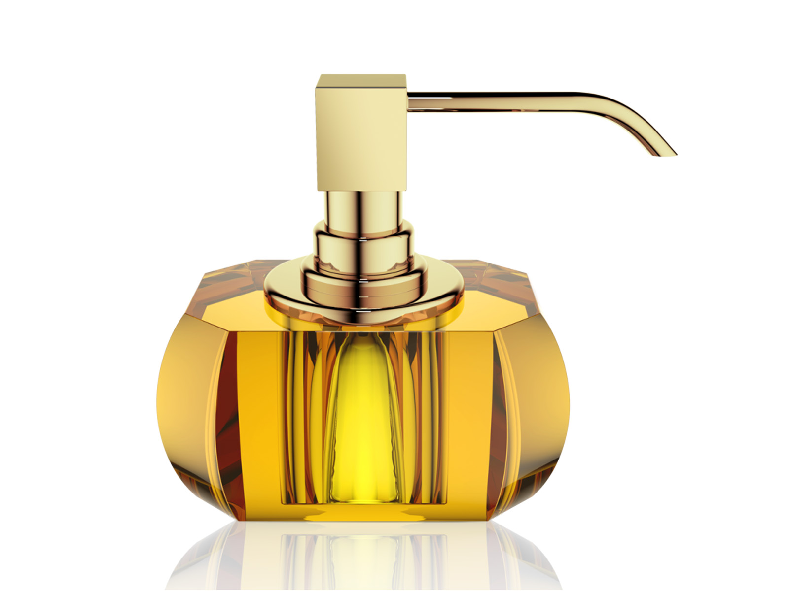 Elegancki dekoracyjny nablatowy dozownik na mydło wykonany z wysokiej jakości barwionego szkła kryształowego o pięknym połysku.