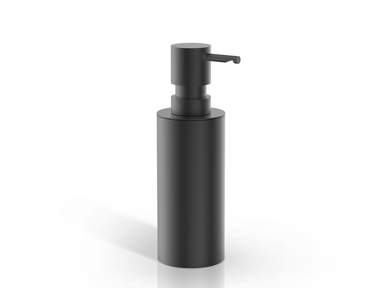 Elegancki nablatowy dozownik na mydło z cylindrycznym pojemnikiem wykonany z wysokiej jakości mosiądzu w wykończeniu matowego surowego metalu.
