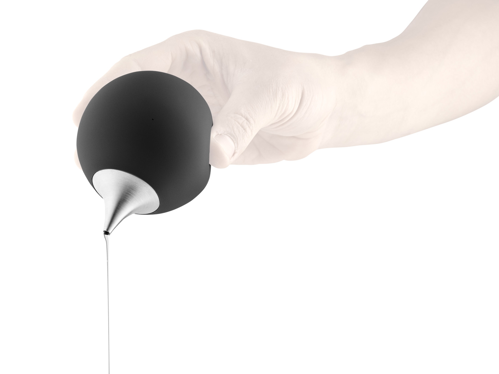 Pomimo okrągłego kształtu dozownik nie obraca się niekontrolowanie po położeniu na blacie ponieważ jest odpowiednio obciążony i dzięki temu pozostaje przechylone pod niewielkim kątem.