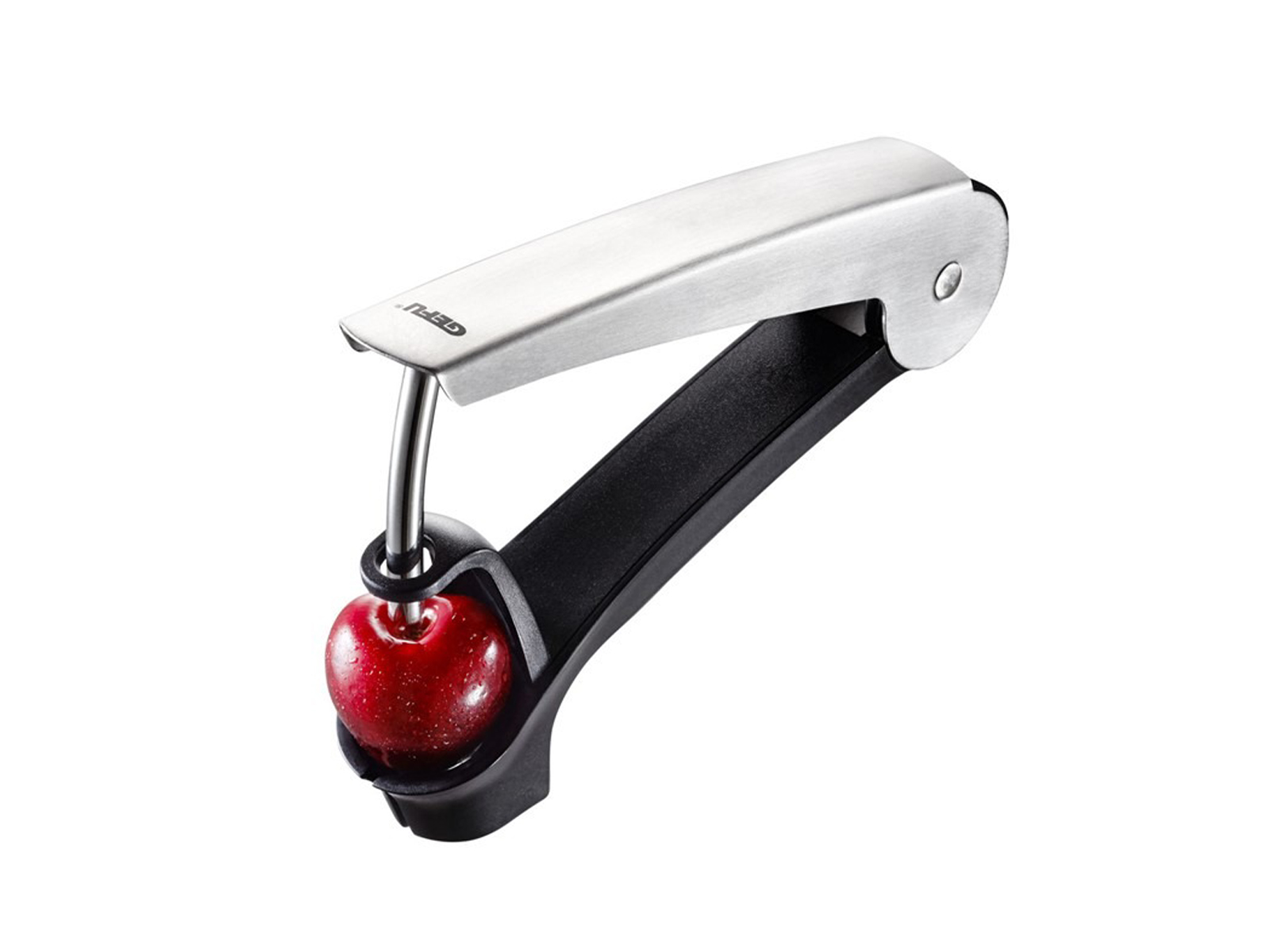 Drylownica GEFU Dropio to funkcjonalne narzędzie, które ułatwia szybkie usuwanie pestek z wiśni, czereśni oraz marynowanych oliwek. Wystarczy umieścić owoc w uchwycie i nacisnąć, aby pestka została usunięta, a miąższ pozostał gotowy do wykorzystania. Dzięki możliwości układania owoców bokiem można zachować szypułki do celów dekoracyjnych. Solidna konstrukcja ze stali nierdzewnej i tworzywa sztucznego gwarantuje trwałość i możliwość mycia w zmywarce, a zamykana forma i kompaktowe wymiary upraszczają przechowywanie w szafkach.