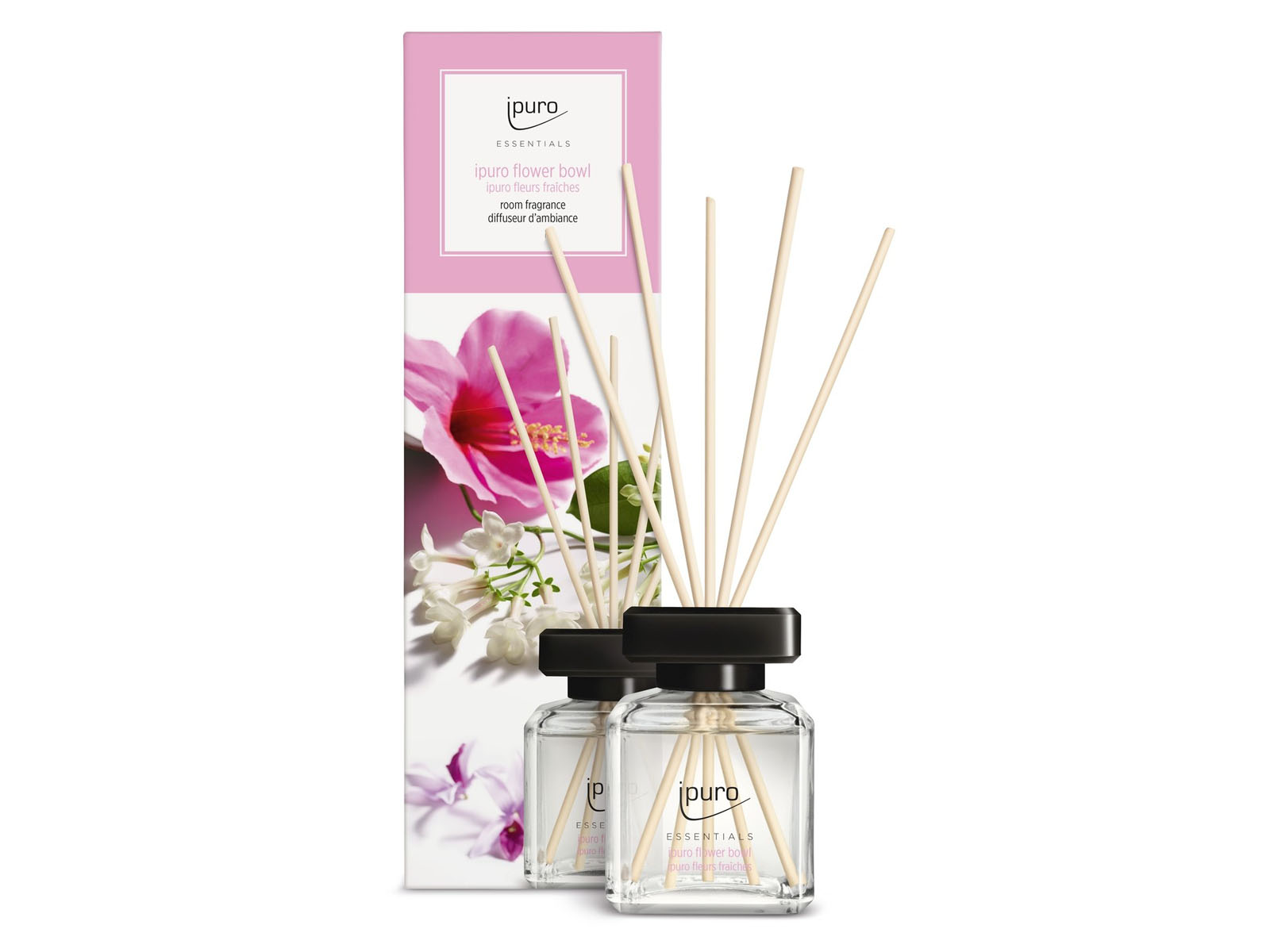 Bukiety zapachowe IPuro Essentials to bazowa linia zapachów do wnętrz w postaci dyfuzorów patyczkowych marki iPuro. Zapachy są oferowane w eleganckich kwadratowych szklanych flakonikach i dzięki rattanowym patyczkom roztaczają zapach nadając wnętrzom niepowtarzalnego klimatu zapachowego.