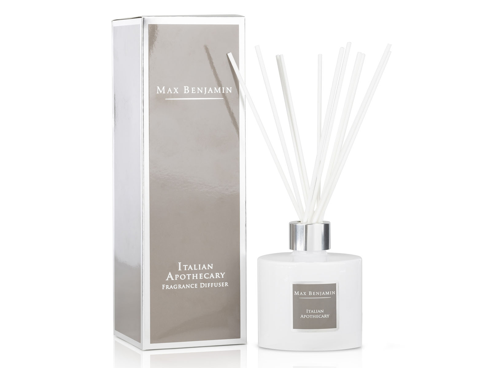 Dyfuzory zapachowe Max Benjamin Classic to wyjątkowe dyfuzory patyczkowe, które stanowią podstawowy element kolekcji zapachów Classic tej marki. Prosty design flakonów oraz połączenie czystej bieli z chromowaną szyjką stanowią bardzo elegancki i jednocześnie "niewidoczny", a wyczuwalny element wyposażenia i dekoracji wnętrza