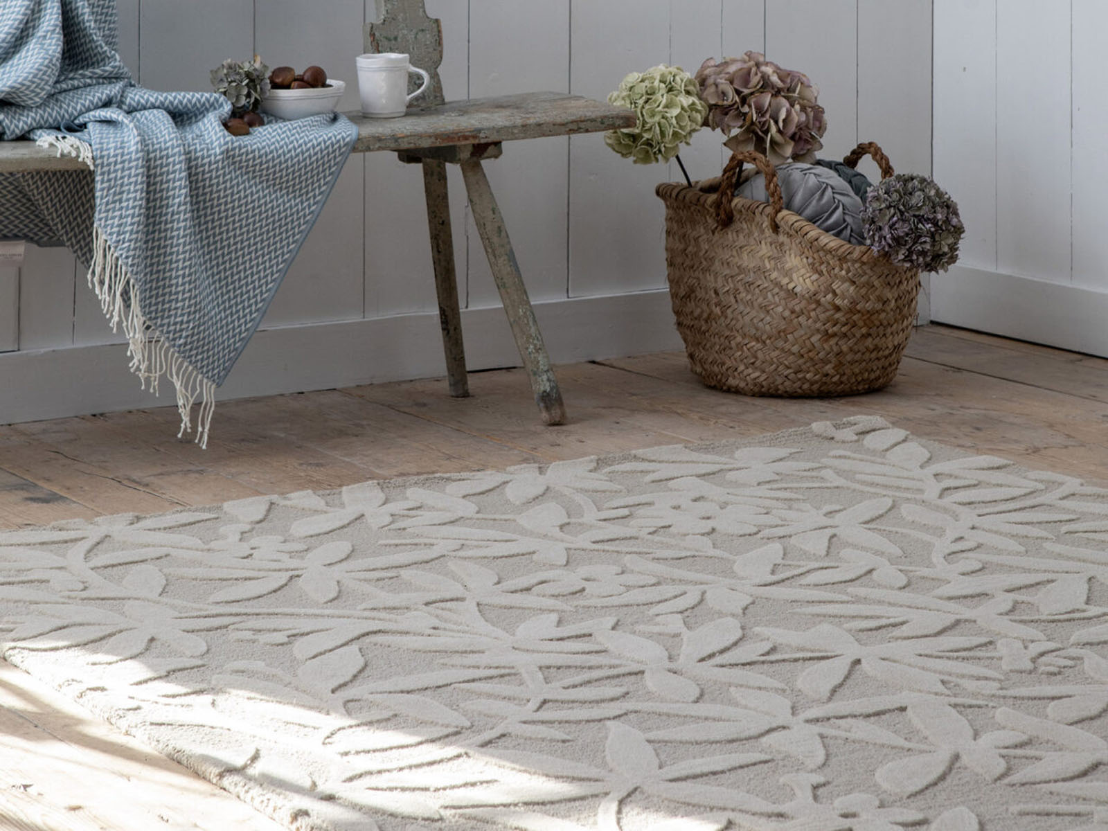 Laura Ashley Cleavers to wyjątkowa klasyczna kolekcja, której głównym elementem stylistycznym jest motyw roślinny przeplatających się łodyg z liśćmi i kwiatami. Ten kwiatowy wzór był pierwszym zaprezentowanym wzorem w kolekcji Laura Ashley w 1970 roku i został zaprezentowany jako płaskorzeźba, dzięki ręcznemu tuftowaniu na różnych płaszczyznach. Dzięki zastosowaniu dwóch różnych technik tkania – ciętego i pętelkowego, wzór jest trójwymiarowy.