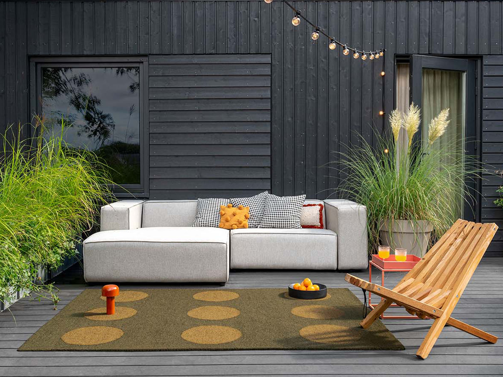 Brink&Campman Festival to wyjątkowo oryginalna i praktyczna kolekcja dywanów zewnętrznych do ogrodu i na taras. Dywany zewnętrzne wyprodukowane są w 100% z polipropylenu, dzięki czemu są niezwykle trwałe, odporne na zabrudzenia oraz łatwe do czyszczenia. Można je stosować nawet na nie zadaszonych tarasach - idealnie nadają się na każde, nawet te najbardziej wymagające warunki atmosferyczne.