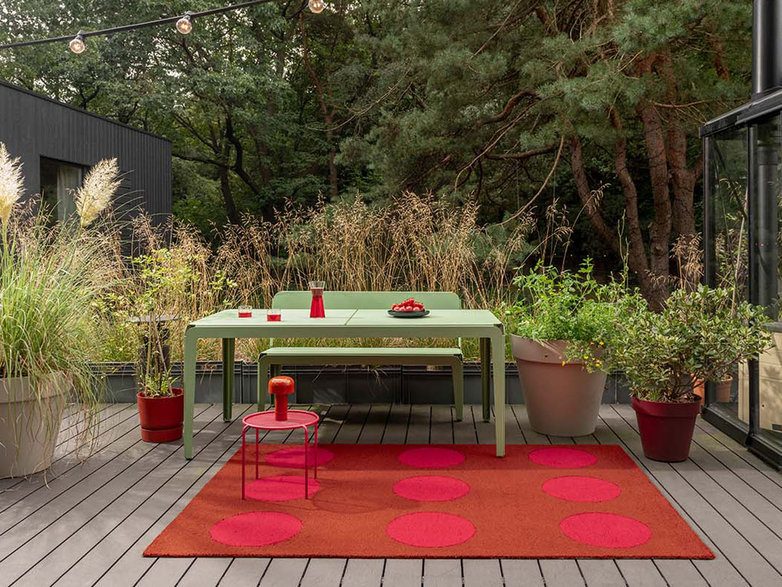 Brink&Campman Festival to wyjątkowo oryginalna i praktyczna kolekcja dywanów zewnętrznych do ogrodu i na taras. Dywany zewnętrzne wyprodukowane są w 100% z polipropylenu, dzięki czemu są niezwykle trwałe, odporne na zabrudzenia oraz łatwe do czyszczenia. Można je stosować nawet na nie zadaszonych tarasach - idealnie nadają się na każde, nawet te najbardziej wymagające warunki atmosferyczne.