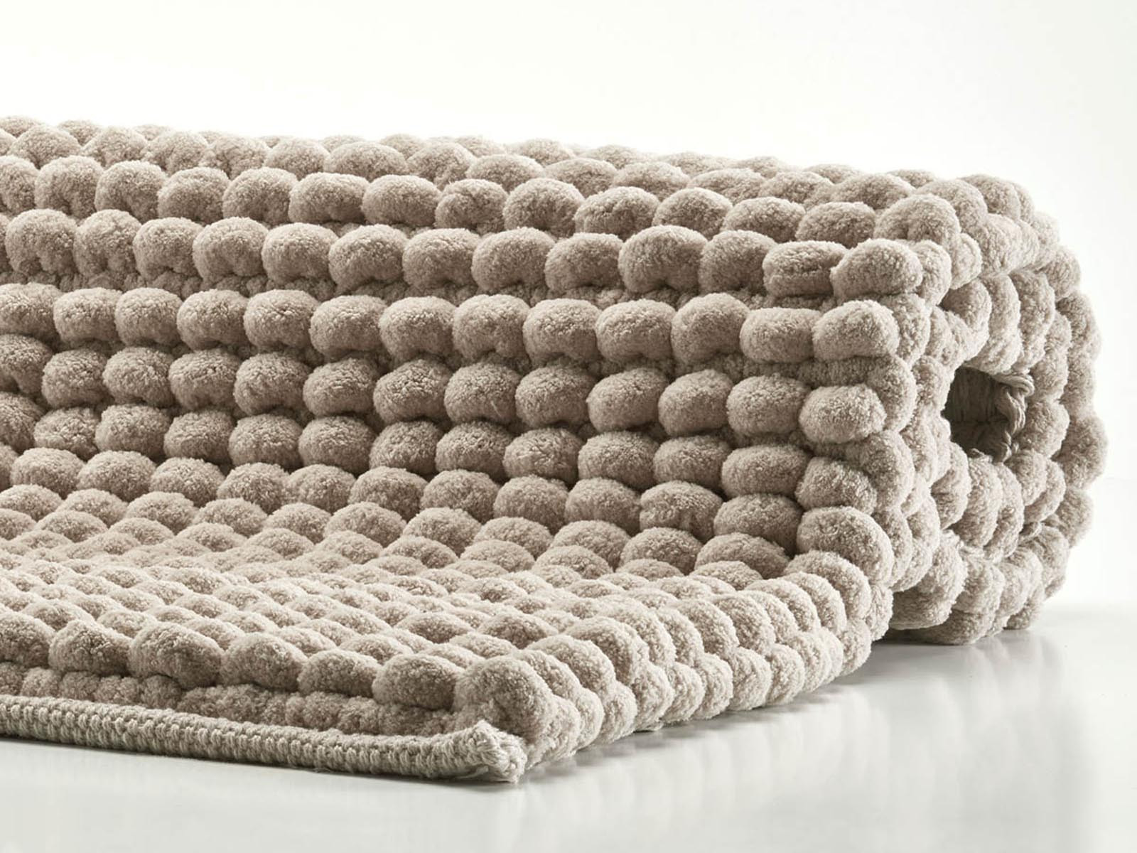 Axel to bardzo oryginalny dywanik łazienkowy, który charakteryzuje się przede wszystkim technologią wykonania - jest to wyjątkowy ręcznie tkany dywanik o bardzo ciekawej unikalnej strukturze dużych grubych pętelek.