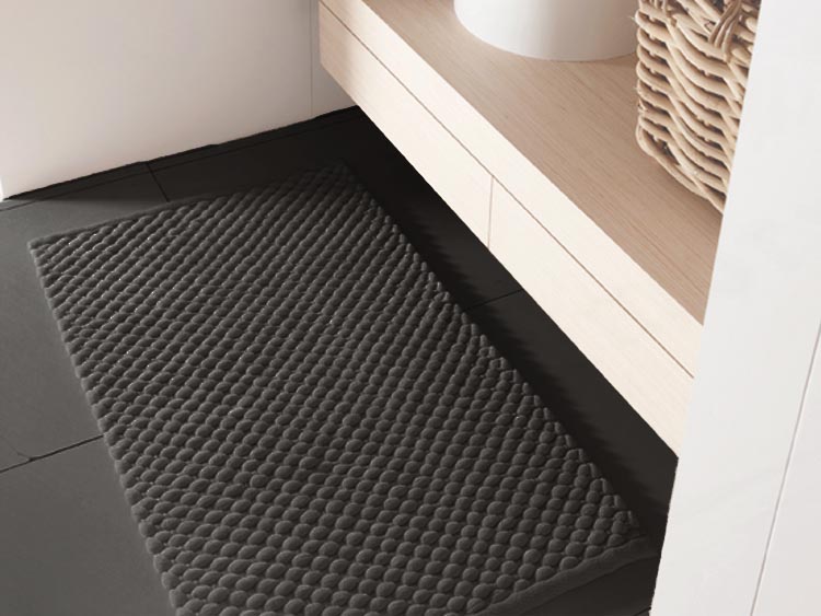Dywanik utrzymany jest w ciemnoszarej tonacji
