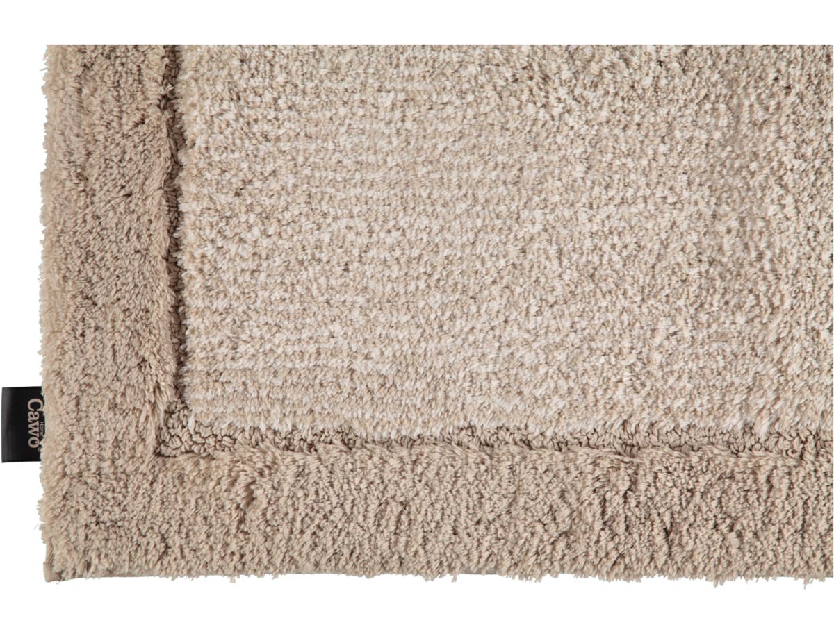 Cawo Two-Tone to wysokiej jakości dywanik łazienkowy. Wzór dywanika nawiązuje do bazowego wzoru kolekcji Two-Tone, znanej z kolekcji ręczników. Jest to szeroka jednokolorowa ramka oraz wewnętrzny dwukolorowy wzór w gęste wąskie pasy. Dywanik jest bardzo miękki, delikatny i puszysty w dotyku.