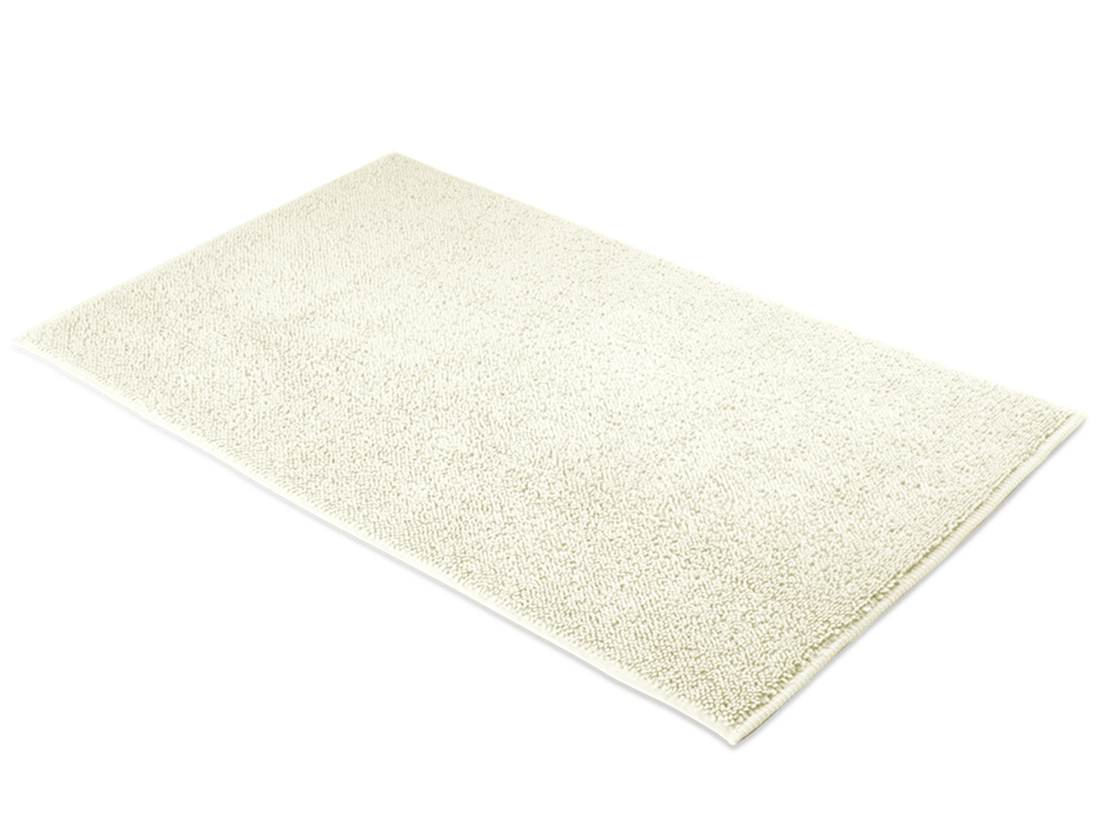Dywanik pętelkowy miękki i miły w dotyku, chłonny, o gramaturze 1700 g/m2, jednokolorowy bez wzoru.