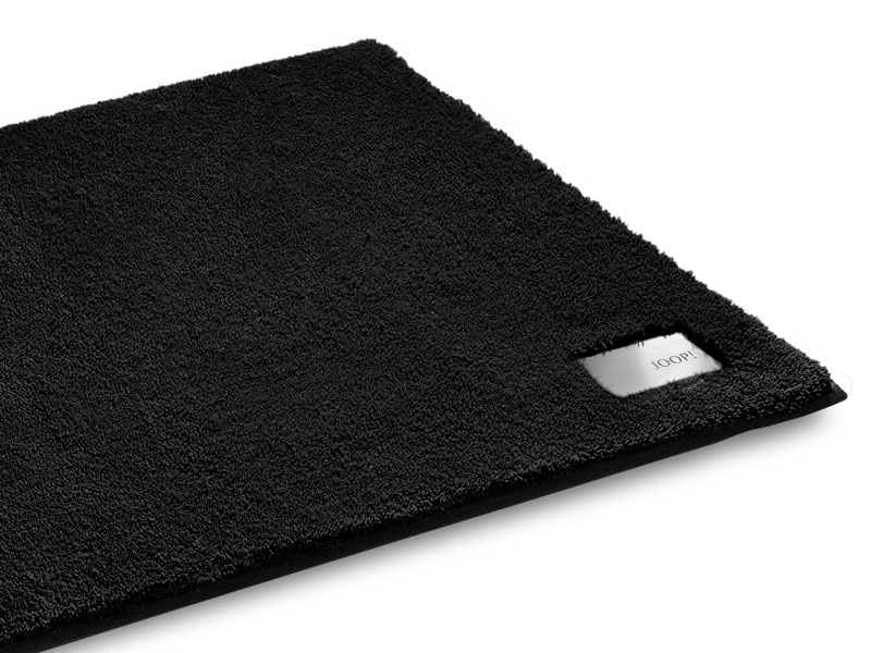 Joop Luxury to przepiękny jednokolorowy dywanik łazienkowy z charakterystycznym eleganckim wyekponowaniem loga JOOP! w postaci metalowej płytki.