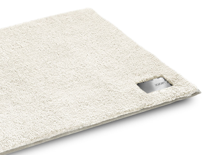 Joop Luxury to przepiękny jednokolorowy dywanik łazienkowy z charakterystycznym eleganckim wyekponowaniem loga JOOP! w postaci metalowej płytki.