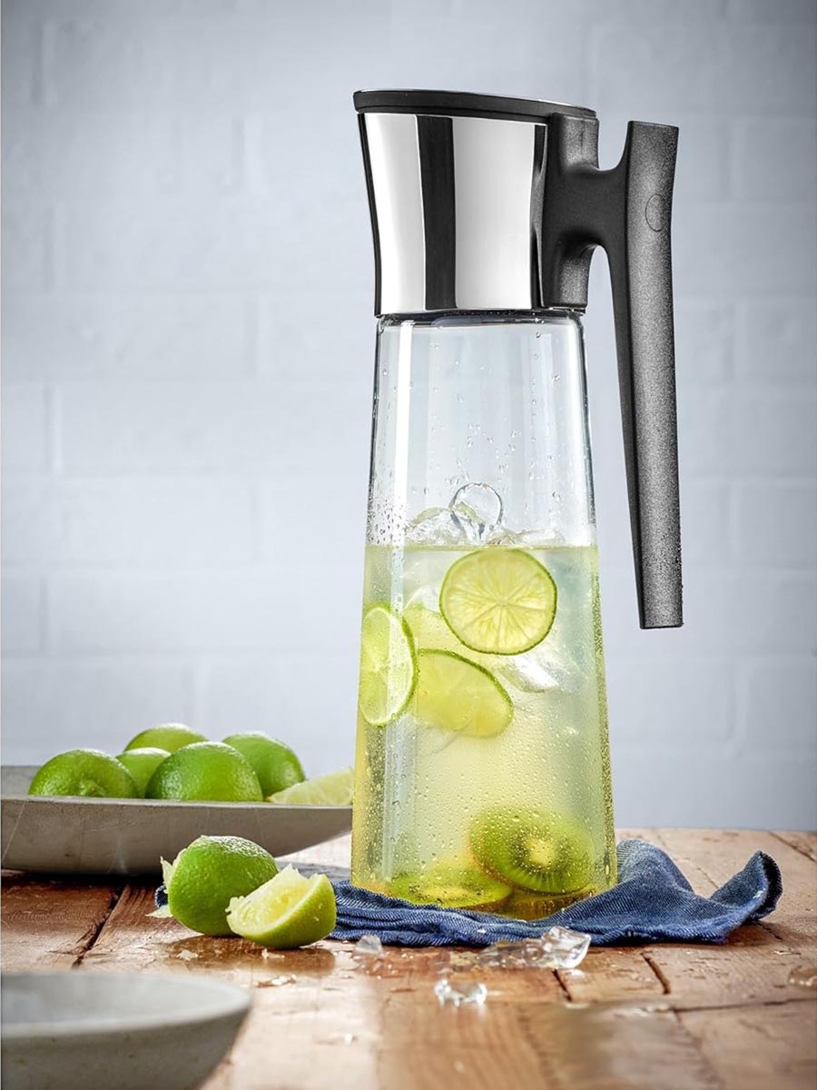 Elegancki stołowy dzbanek do serwowania wody oraz innych zimnych i ciepłych napojów z praktyczną pokrywką CloseUp oraz wygodnym ergonomicznym uchwytem.