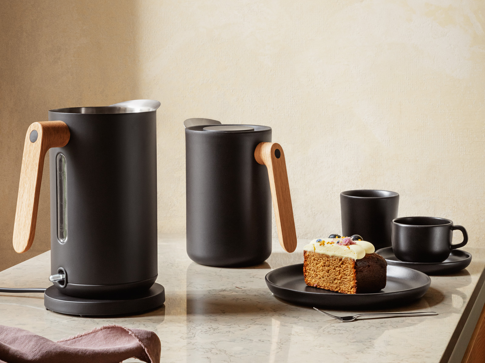 Elegancki i oryginalny próżniowy dzbanek termiczny w skandynawskim stylu przeznaczony do serwowania gorących napojów.