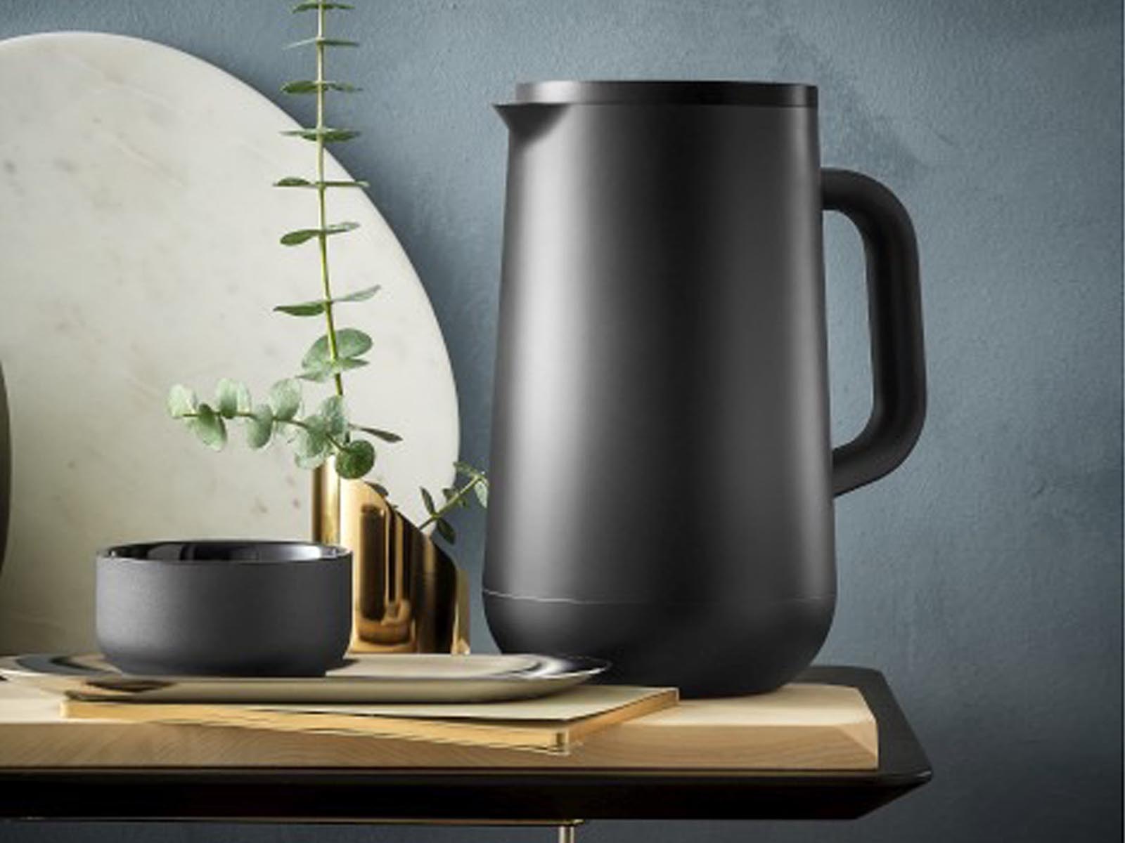 Dzbanek w nowoczesnym minimalistycznym kształcie wykonany z malowanej stali nierdzewnej w matowym wykończeniu z wygodnym uchwytem oraz wieczkiem wykonanymi z solidnego tworzywa sztucznego.
