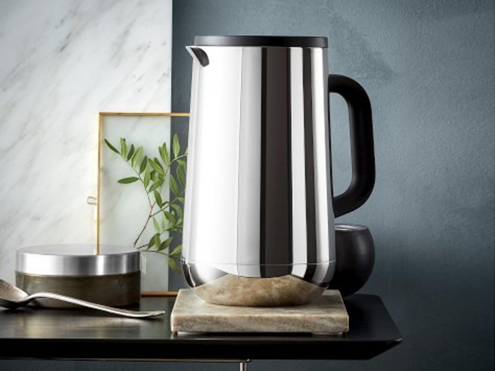 Dzbanek w nowoczesnym minimalistycznym kształcie wykonany z polerowanej stali nierdzewnej z wygodnym uchwytem oraz wieczkiem wykonanymi z solidnego tworzywa sztucznego.