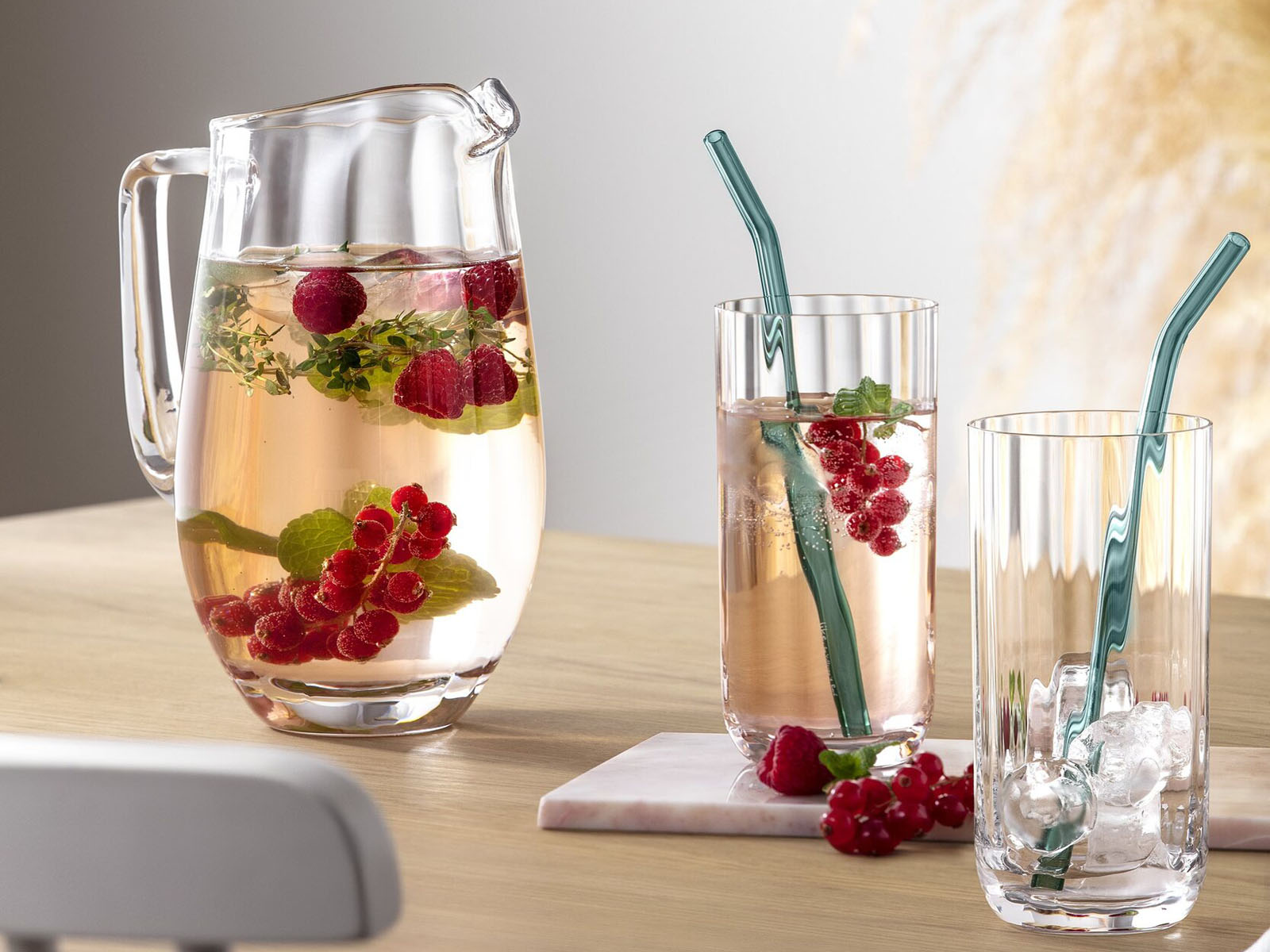 W skład kolekcji wchodzą kieliszki do wina białego oraz czerwonego, kieliszki do szampana, kieliszki do wody oraz szklanki