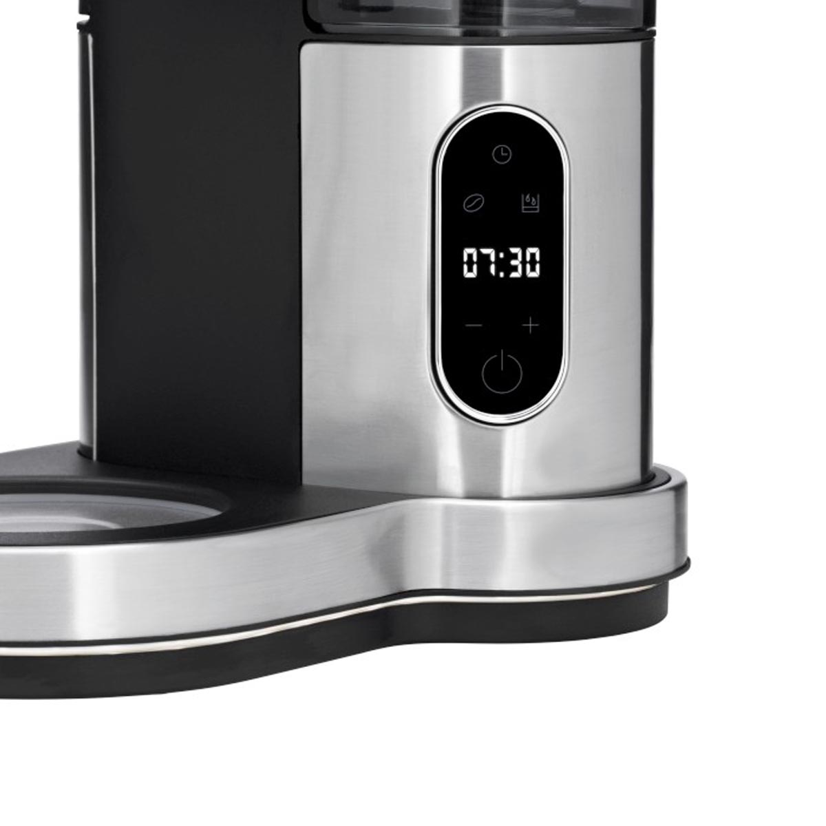 Ekspres o mocy 800 W z podświetlanym dotykowym intuicyjnym panelem sterowania z niewielkim elektronicznym wyświetlaczem czasu, który umożliwia: