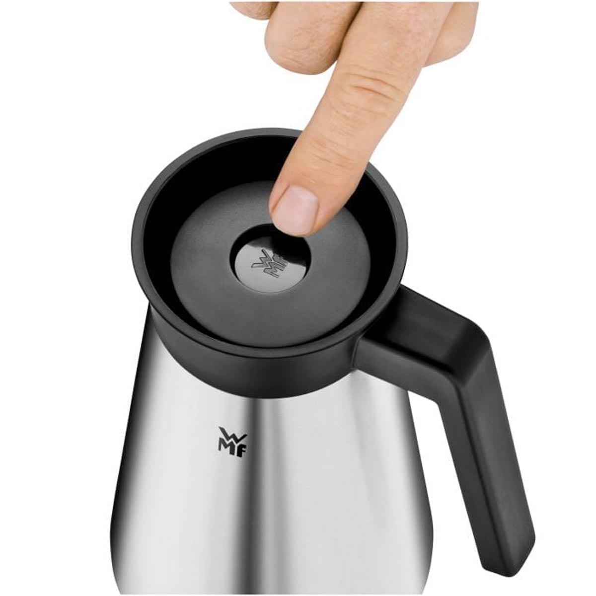 Dzbanek oraz kubek dzięki izolacji termicznej WMF Keep Hot utrzymuje kawę w odpowiedniej temperaturze przez wiele godzin, posiadają 2 szczelne, niekapiące, wymienne pokrywki, jedna pokrywka z uchwytem, druga bez uchwytu.