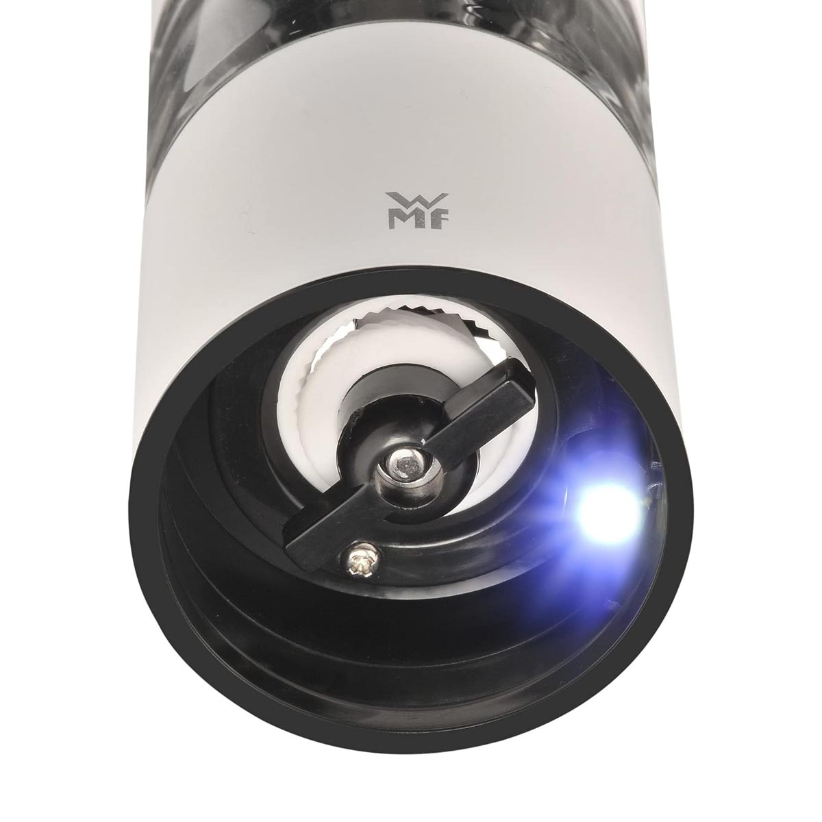 Młynek pod spodem posiada zintegrowane oświetlenie LED zapewniające optymalną widoczność ilości dozowania przypraw przy słabym oświetleniu lub w wysokich naczyniach - światło pod młynkiem włącza się automatycznie podczas mielenia.