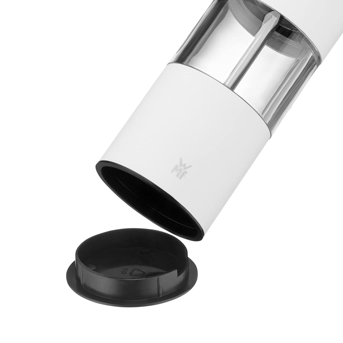 Mechanizm mielący młynka uruchamiany jest automatycznie przez naciśnięcie przycisku umieszczonego na górze obudowy umożliwiając obsługę młynka jedną ręką - młynki zasilane na baterie typu AAA 1,5 V.