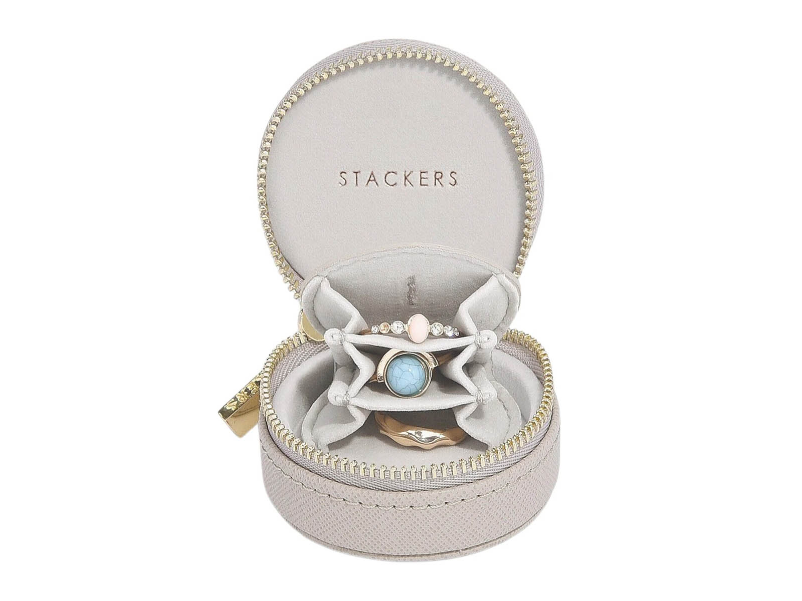Stackers Mini Oyster to eleganckie etui podróżne idealne do przechowywania pierścionków, kolczyków oraz łańcuszków z małymi zawieszkami. Etui posiada dedykowane przegródki do odzielenia pojedynczych elementów biżuterii, a także pozwoli na dodatkowe przechowanie drobnych elementów biżuterii.