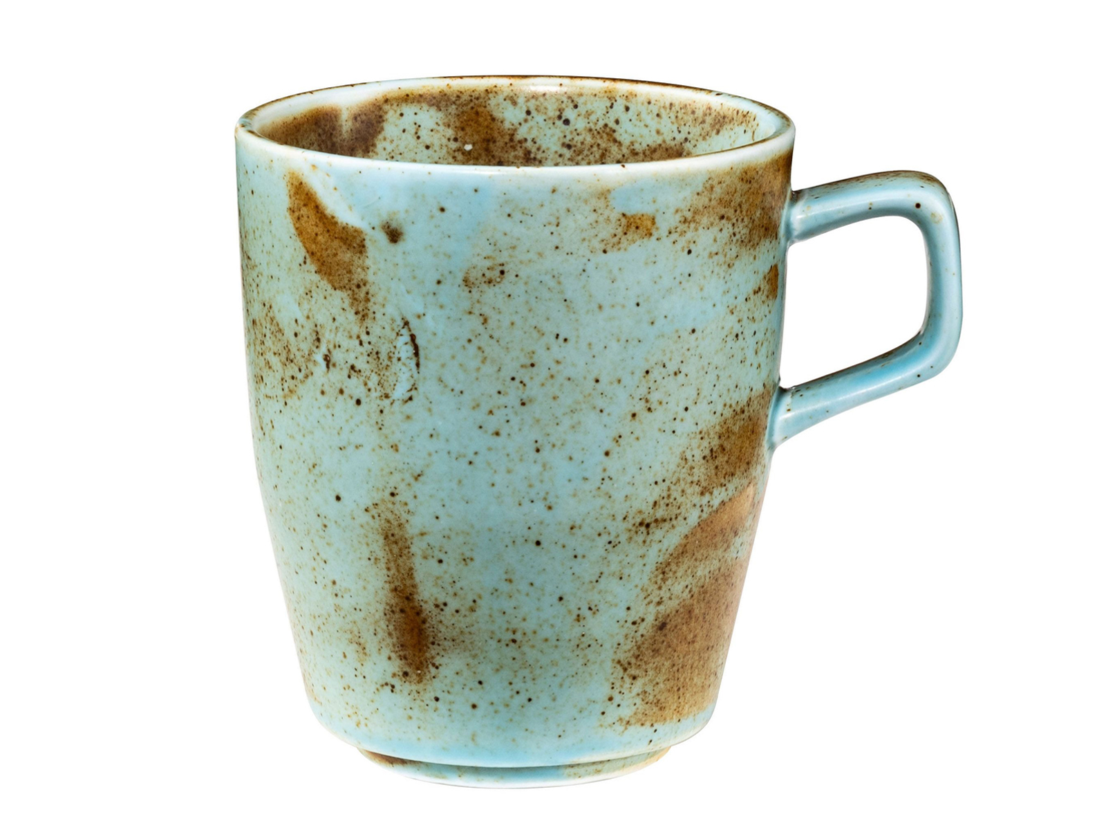 Verlo Brassi to kolekcja ręcznie zdobionej porcelany, która łączy w sobie świeżość morskiej bryzy i ciepło pustynnego klimatu. Turkusowo-rdzawa kolorystyka nawiązuje do spotkania wody i piasku – chłodnych fal obmywających rozgrzany brzeg. Reaktywne szkliwo tworzy miękkie przejścia barw, złociste smugi i brązowe drobiny, sprawiające wrażenie rozsypanych na powierzchni naczyń, dzięki czemu całość zyskuje wyjątkowo naturalny charakter. Matowe wykończenie ze subtelnymi żłobieniami i organicznym wyglądem wpisuje się w styl etniczny, przywołujący motywy różnych kultur i tradycji. Geometryczne kształty uszek oraz rozjaśnione, podwyższone ranty dodatkowo podkreślają autentyczny urok całej zastawy.