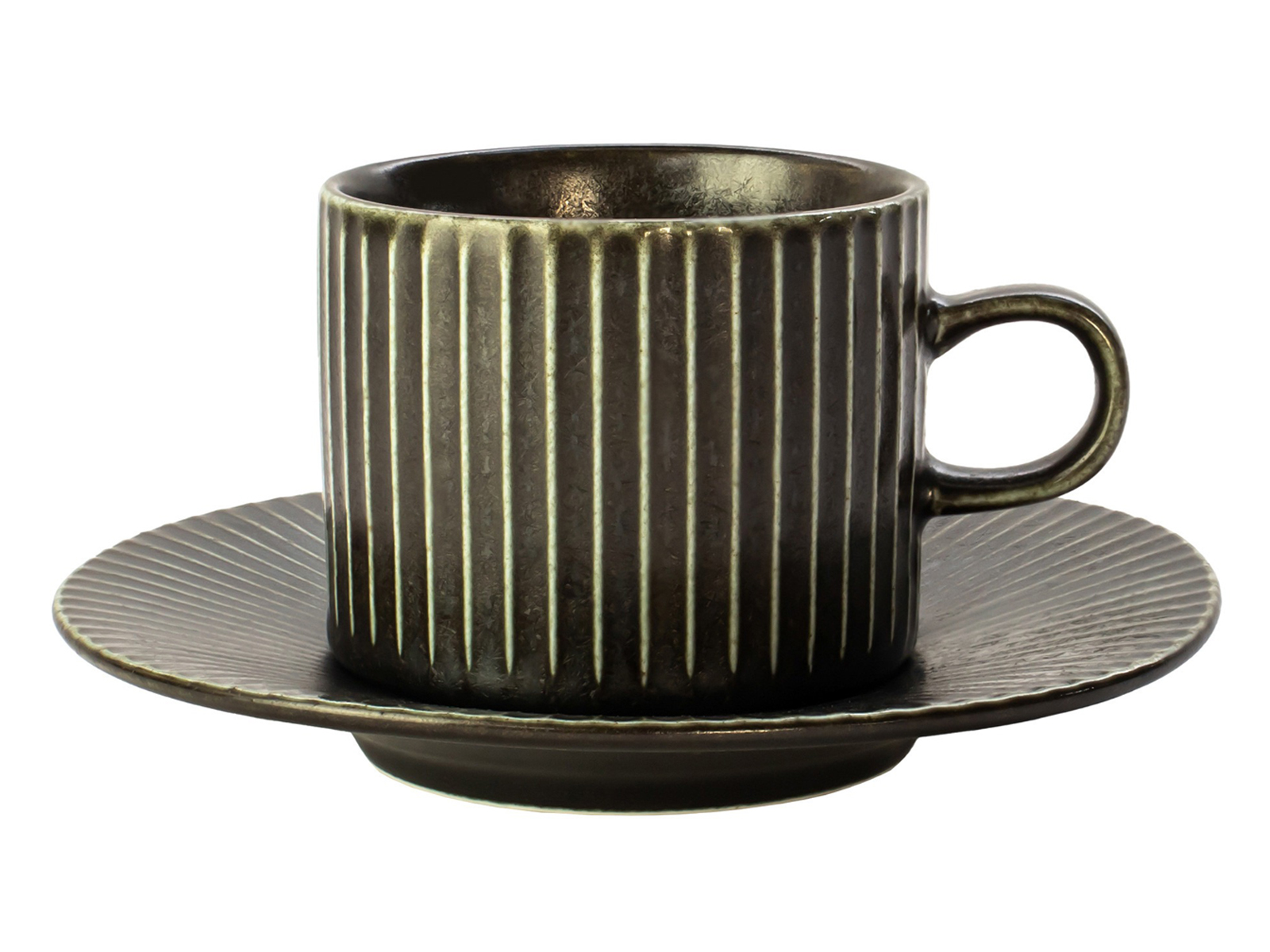 Verlo Plisse to wyjątkowa kolekcja ręcznie zdobionej porcelany, która urzeka klasyczną elegancją w dekoracyjnym wydaniu. Głęboki ciemnoszary kolor podkreśla niuanse szkliwienia, które nadają naczyniom grafitowy charakter o zmiennym połysku. Półmatowe wykończenie w niebieskich, żółtych i niemal czarnych odcieniach tworzy różnorodny, ołówkowy styl całej zastawy. Subtelne ryflowania dodają całości wyrafinowanego wyglądu, a proste formy z krótkimi uszkami i małymi dzióbkami zachowują jej uniwersalność.