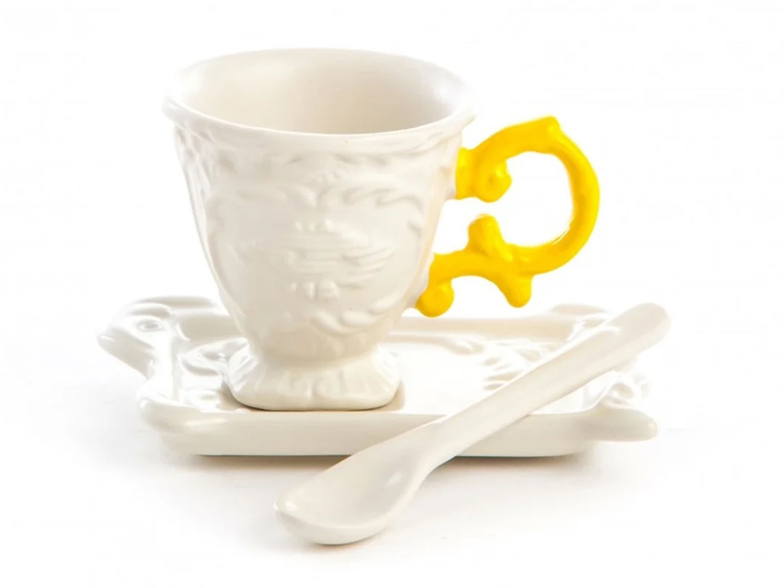 Seletti I-Wares to bardzo oryginalna kolekcja porcelanowych naczyń, których myślą przewodnią jest nawiązanie do dobrze wszystkim znanego, bardzo zdobnego stylu barokowego. Główne części naczyń to biała porcelana zdobiona ornamentami. Uchwyty naczyń są malowane na kontrastowe kolory, w tym również kolor złoty.