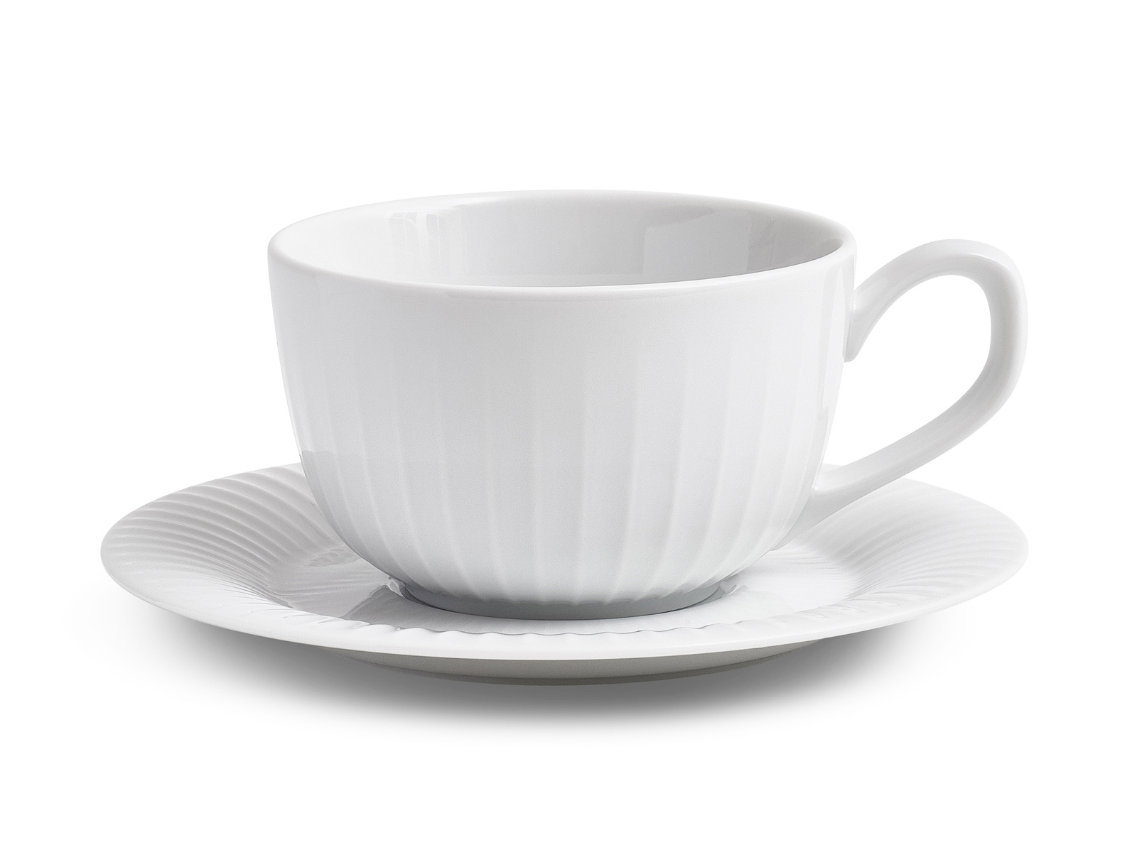 Filiżanka Hammershøi idealnie wpisuje się w klimat i stylistykę kolekcji. Filiżanka i spodek zdobione są charakterystycznymi dla kolekcji żłobieniami.